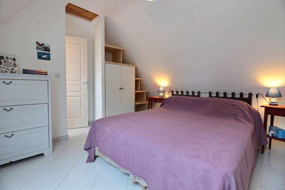 Dieses Ferienhausangebot enthält: Im Erdgeschoss: ausgestattete Einbauküche, Essecke, Wohnzimmer, WC. Im 1. Stockwerk: 1 Schlafzimmer (1 Bett 2 Pers 160x200) mit eigenem Dusch-Badezimmer und WC. Privates Grundstück von 120 m². Betten sind bei Ihrer Anreise bezogen. Baby-Ausstattung: Badewanne, Klappbett, Hochstuhl, Wickelauflage, Treppen-Barriere. Kurtaxe vor Ort zahlbar.