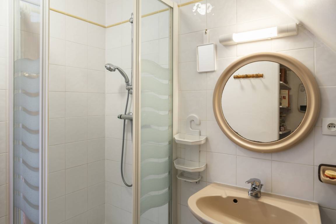 Obergeschoss: Ein 16 m² großes Schlafzimmer (ein Doppelbett 140 x 190 cm und ein Kinderbett), Badezimmer mit Dusche und WC.