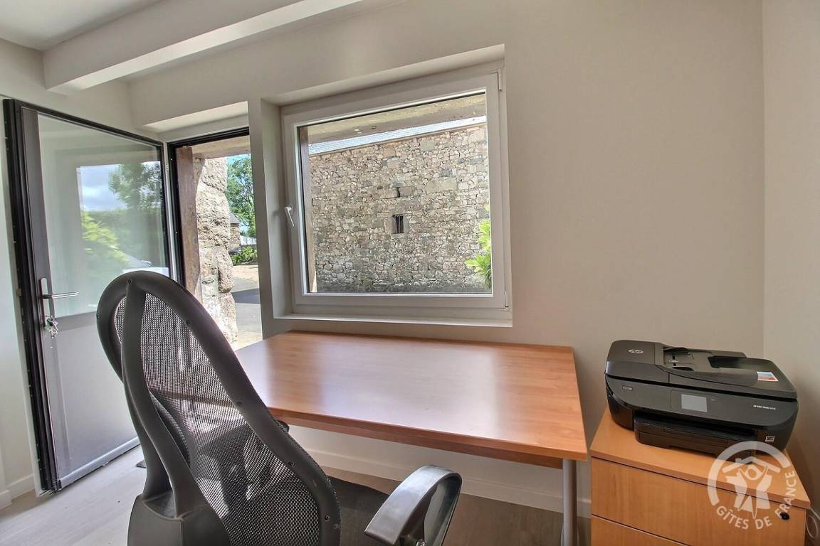 - Außerdem wurde in einem Raum im Erdgeschoss neben der Gîte ein Telearbeitsplatz eingerichtet, der Ruhe und Konzentration bietet.