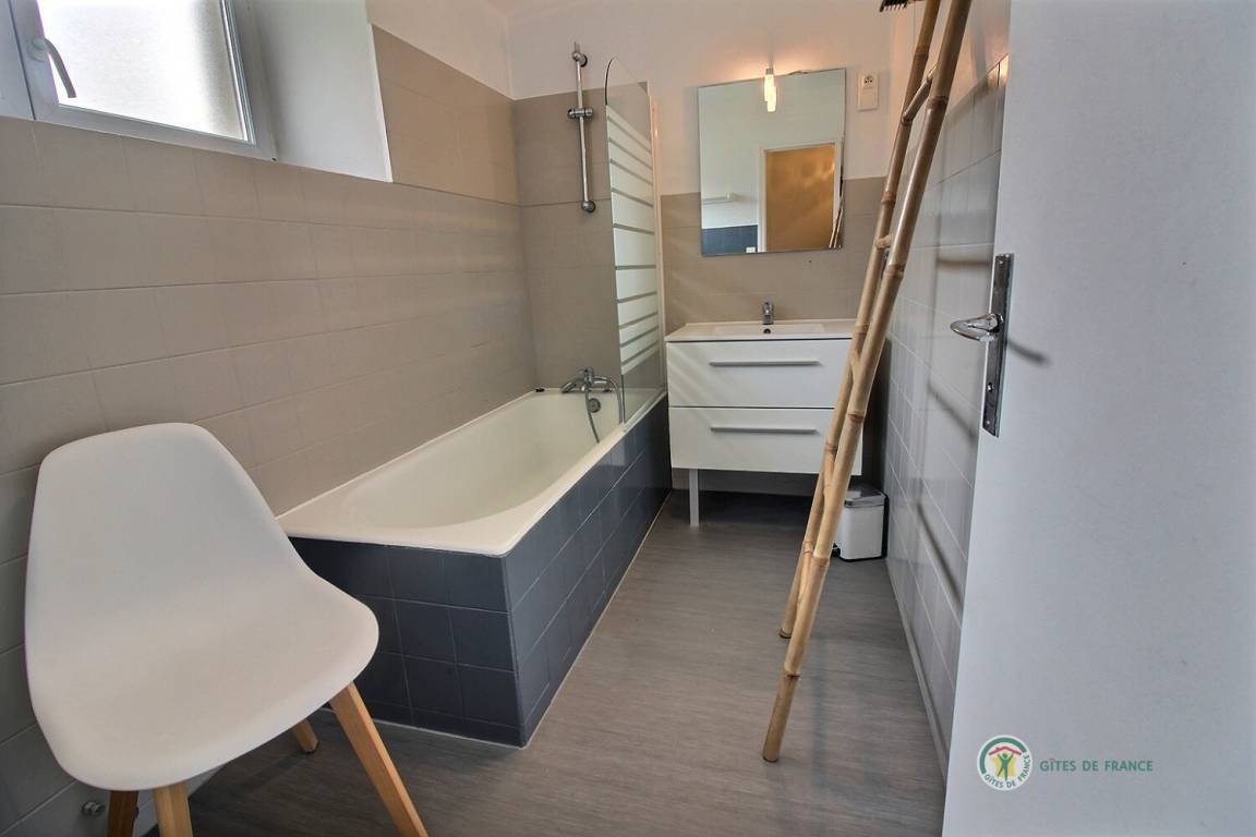 „Logement assez grand, bien situé pour visiter la côte bretonne. Propriétaire très sympathique et arrangeant !Le logement mériterait un bon ménage de fond et un petit rafraîchissement. À revoir rapidement: Aspirateur cassé, fuite à la douche. Nous avons tout de même passé un bon séjour !“