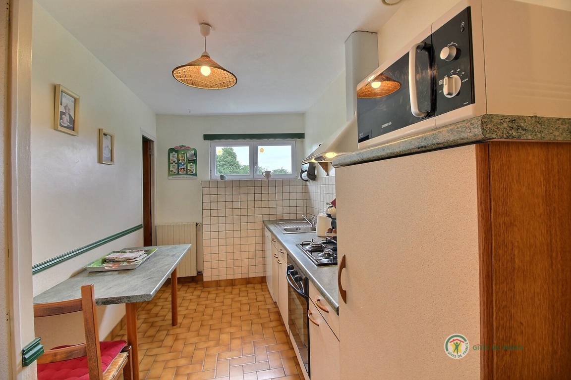 Ihre Ferienwohnung umfasst im Erdgeschoss eine Küche, ein Wohnzimmer mit Sitzecke, ein Badezimmer mit Badewanne, WC. Obergeschoss: 2 Schlafzimmer mit je einem 140x190 Bett und ein Schlafzimmer mit 2 90x190 Betten. Privater Garten. Wäschetrockner gemeinsam für die 2 Gîtes.
