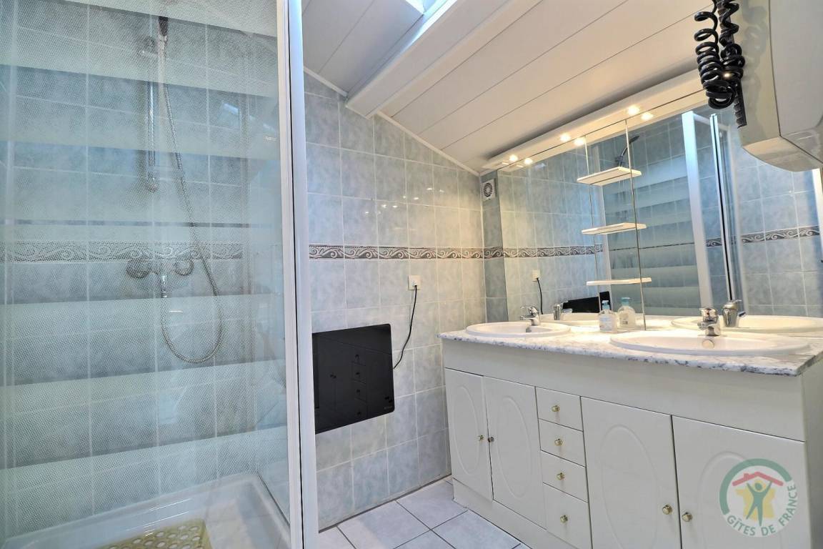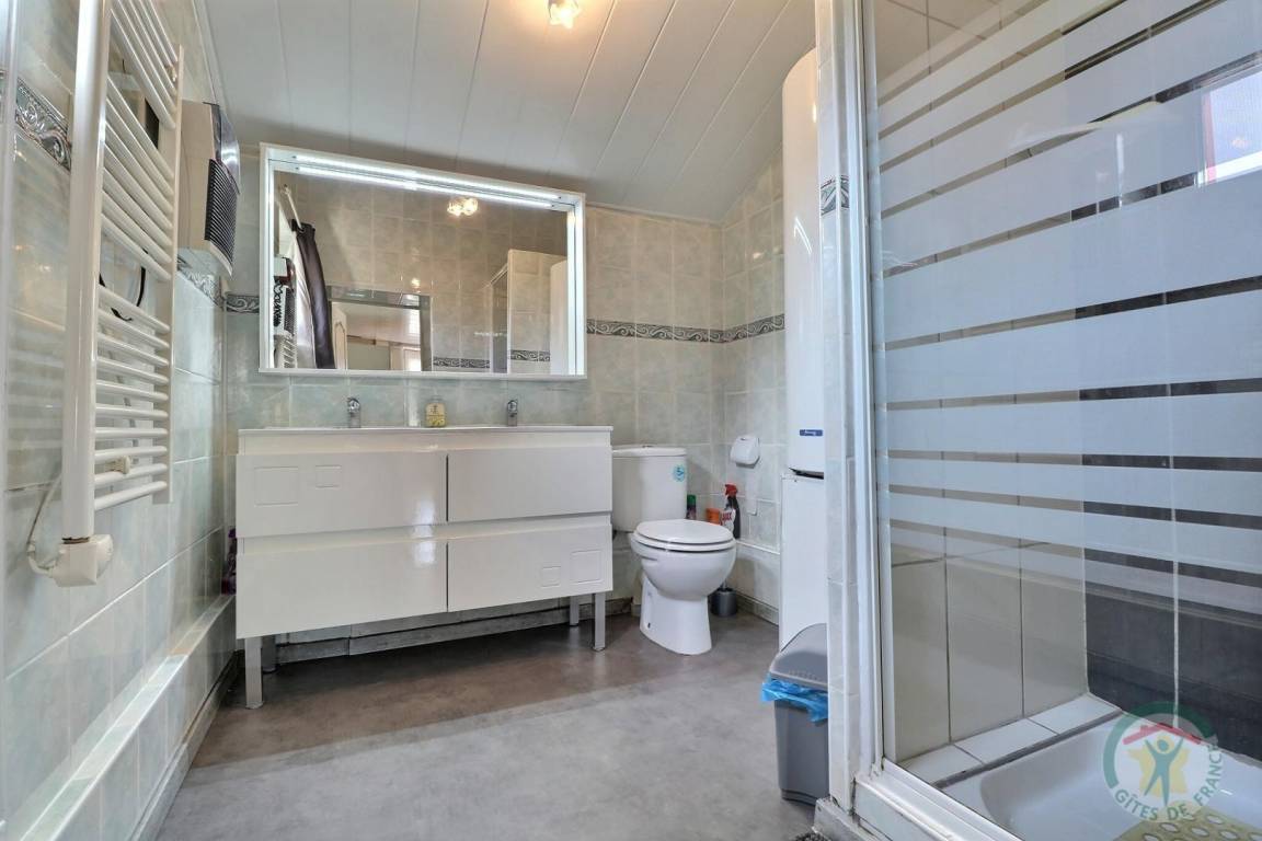 „Comme il est écrit partout propriétaire fort gentil. Mais la maison pas très pratique et pas de wc à l’étage. Poutres au niveau des lits à l’étage ou l’on se cogne la tête dés le lever. Pas de porte dans une des salles de bains. Literie très bonne. Niveau cuisine très bien équipé. Au vu des vieux convecteurs le prix pour 5 jours de chauffage très élevé. L’assise des fauteuils dans le salon n’est pas agréable“