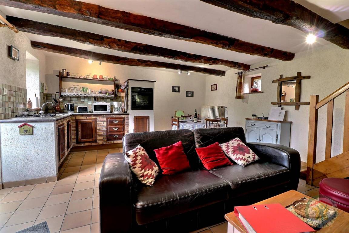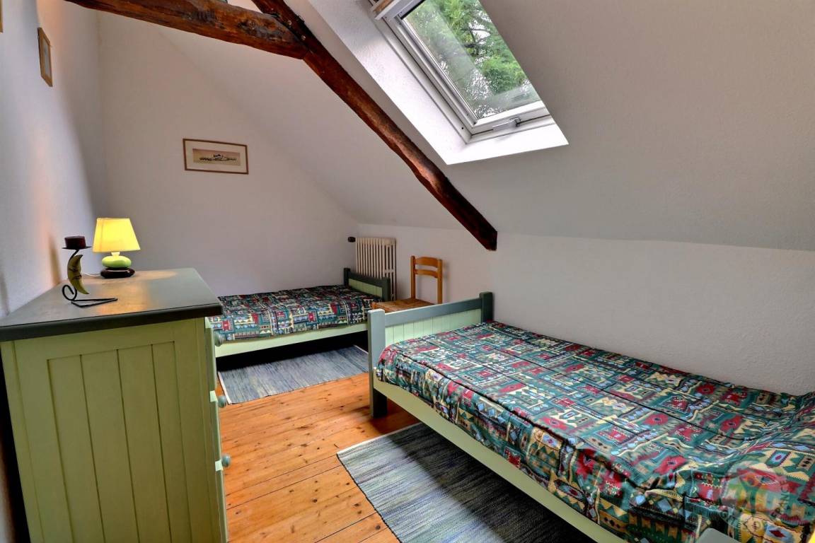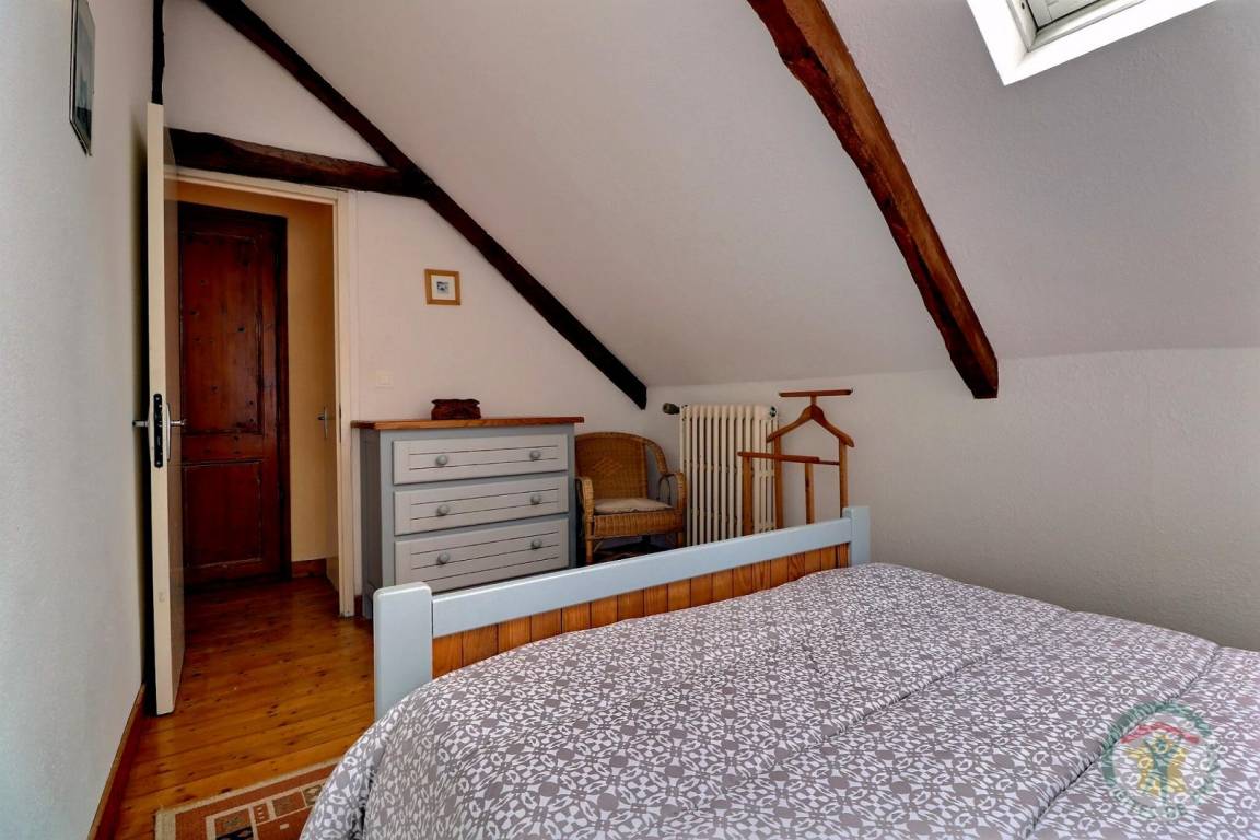 EG: Wohnbereich mit Esszimmer und Wohnzimmer und einem großen Kamin, Kochecke. Stockwerk: 1 Schlafzimmer (1 Doppelbett), 1 Schlafzimmer (2 Einzelbetten), Bad mit Dusche und WC. Hochstuhl, Wickeltisch, Babybadewanne. Zentralheizung.
