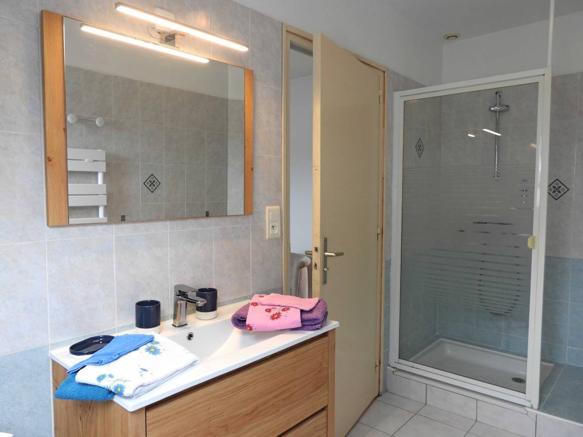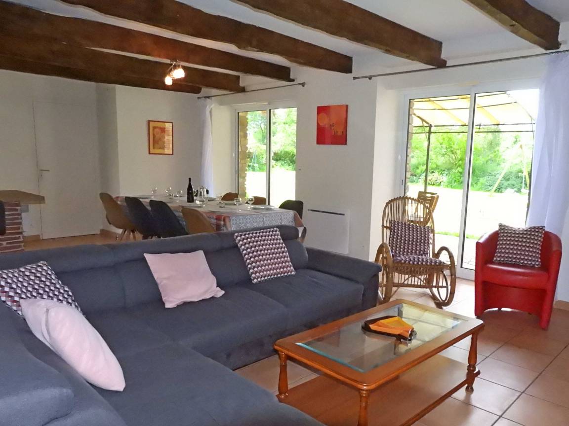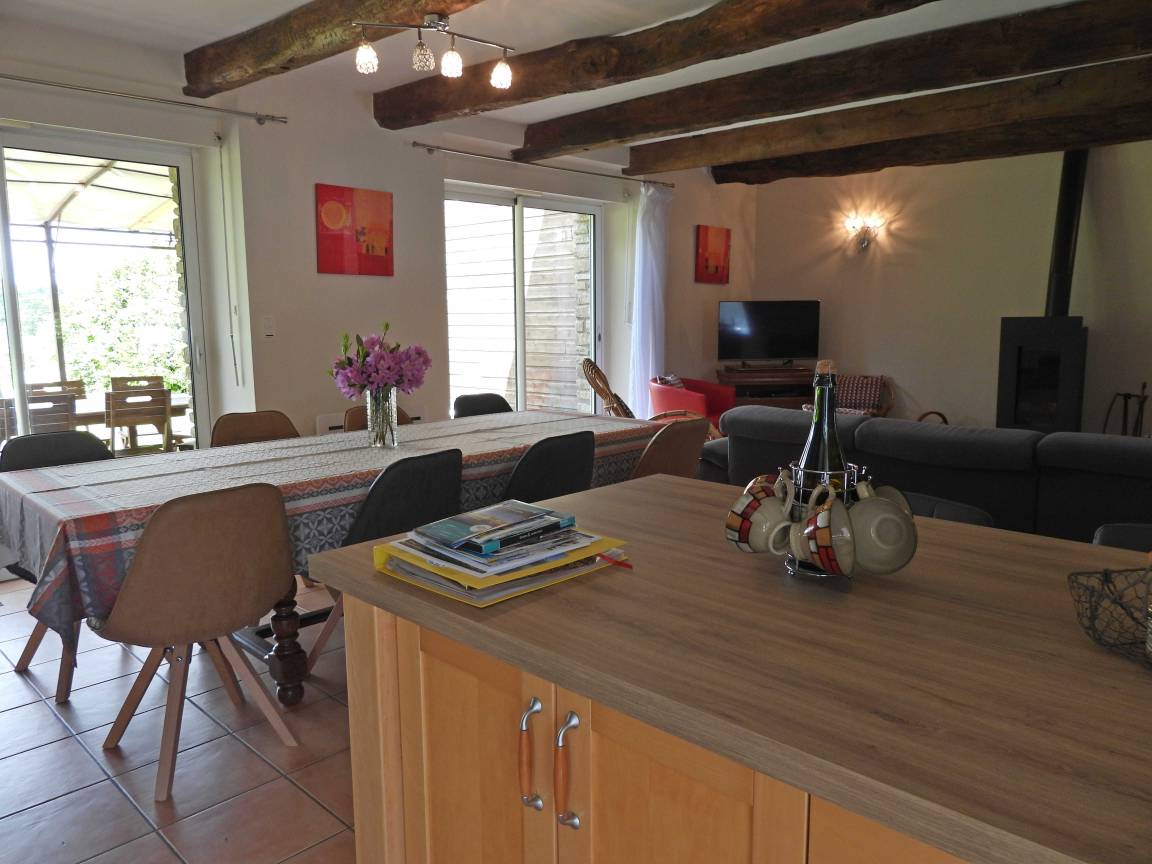 Unabhängiges lang gestrecktes Haus auf dem Bauernhof der Vermieter / ihr Wohnhaus sowie ein weiterer Gîte befinden sich auch dort. EG: Diele, Wohnraum mit Kochecke und Holzofen, Doppelzimmer mit Dusche/WC, sep. WC, Waschküche. 1.Stock: 2 Zweibettzi. je mit Dusche und WC, Doppelzimmer, Bad/WC. Die Betten sind bezogen. Wi-Fi. E-Heizung. Eigener Garten (200m²), Gartenmöbel, Grill. Schaukel, Terrasse.