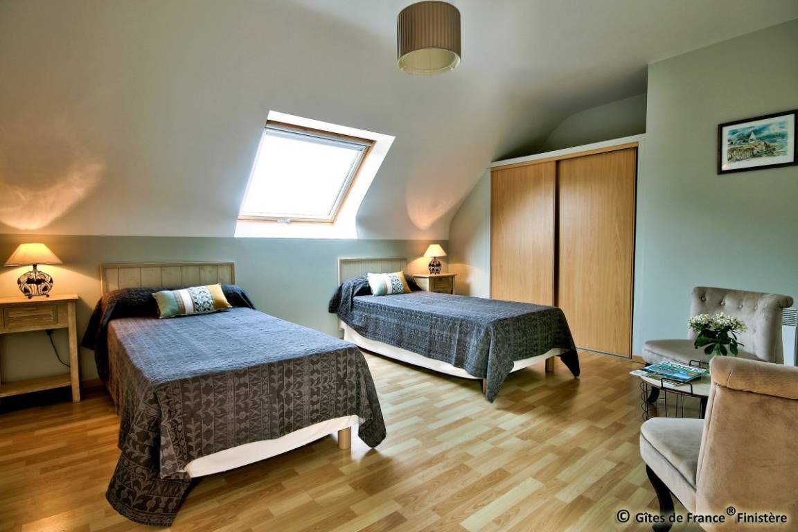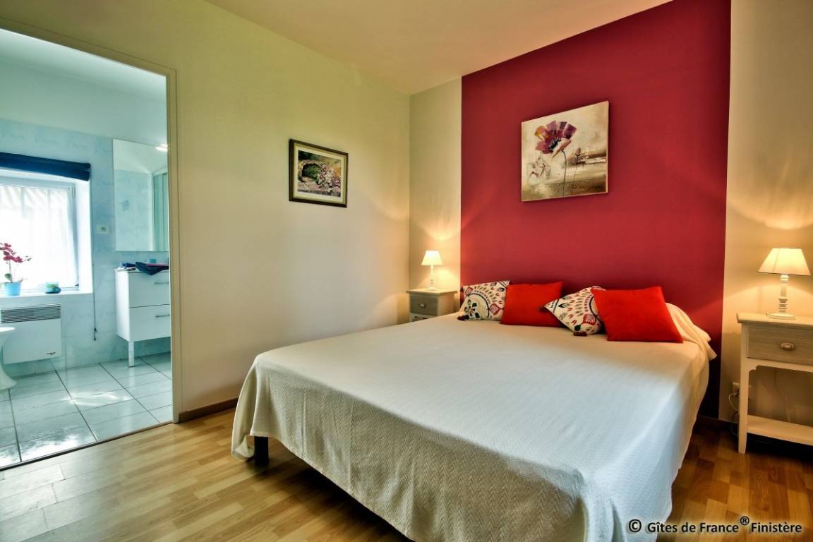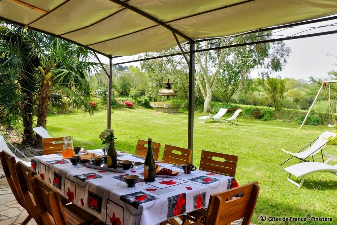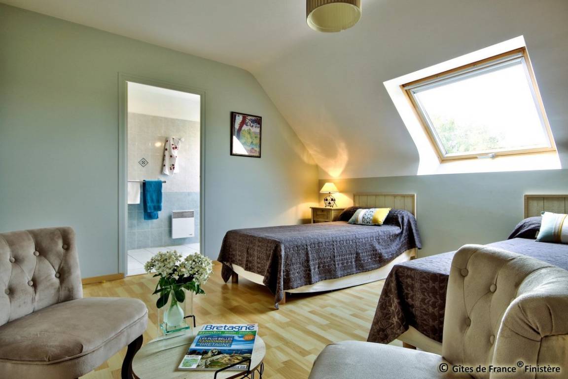„Ce gîte est parfaitement agencé et dispose de tous les équipement nécessaires à un bon séjour. Les 4 chambres spacieuses chacune avec sdb et wc permettent de se retrouver en famille tout en gardant son intimité et son coin perso. les espaces salon et salle à manger acceptent sans problème une grande famille de par leur taille. le jardin est très agréable avec les équipements pour permettre la détente. le cadre est bucolique et très calme. les propriétaires sont accueillants et disponibles. Pleuven est au cœur de nombreux sites à visiter.“