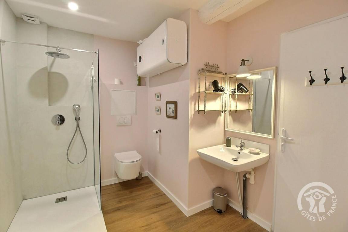 Ihre auf einer Ebene eingerichtete und für Personen mit eingeschränkter Mobilität angepasste Ferienwohnung umfasst auf derselben Ebene:
