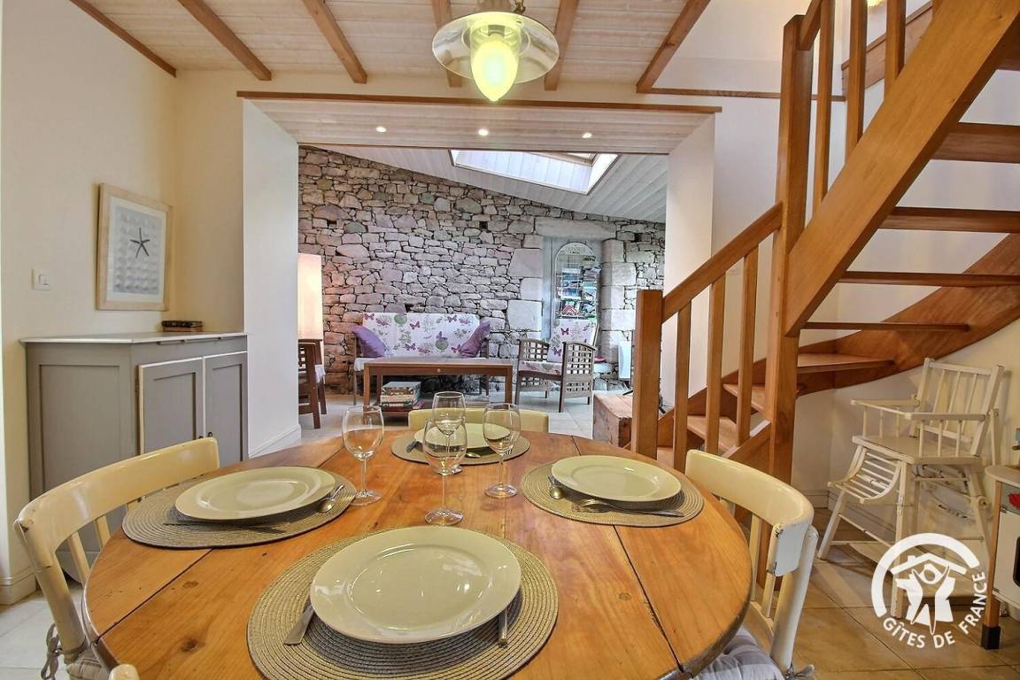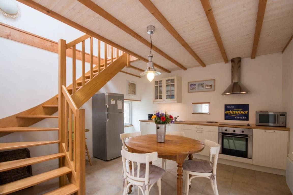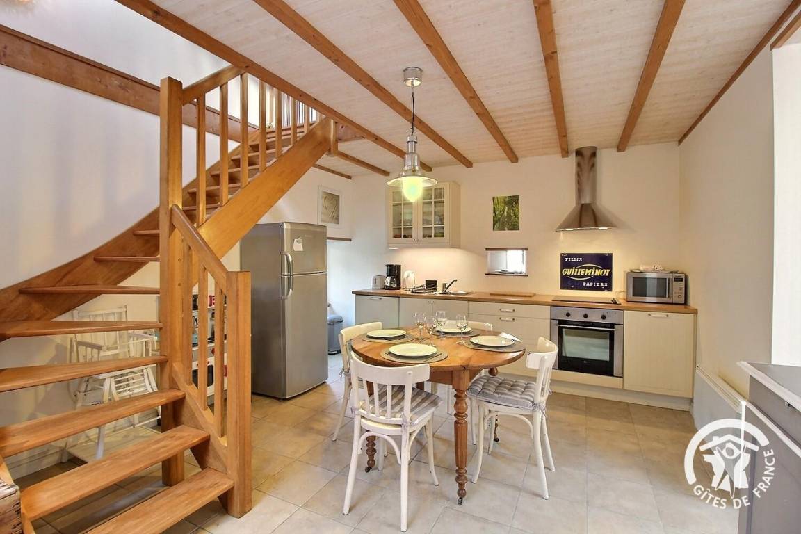 Ihre Ferienwohnung, in der Nähe des Ferienhauses 22G350915, umfasst im Erdgeschoss ein schönes Wohnzimmer von 30 m² mit einer kleinen Einbauküche und einem Essbereich sowie einen mit alten Steinen dekorierten Loungebereich unter einer Veranda. Das Schlafzimmer für 2 Personen bietet ein 140x190 Bett, das Badezimmer ist mit einer Dusche ausgestattet und die Toiletten sind separat. Im Obergeschoss bietet ein 2. Schlafzimmer für 2 Personen 2 Betten 90x190. Sie profitieren von einer gut geschützten privaten Terrasse von 25 m² mit Gartenmöbeln, Liegestühlen und Sonnenliegen sowie einem Grill. Sie haben Zugang zum gemeinsamen Garten von 800 m² mit Tischtennisplatte, Hütte und Rutsche für die Kleinen.