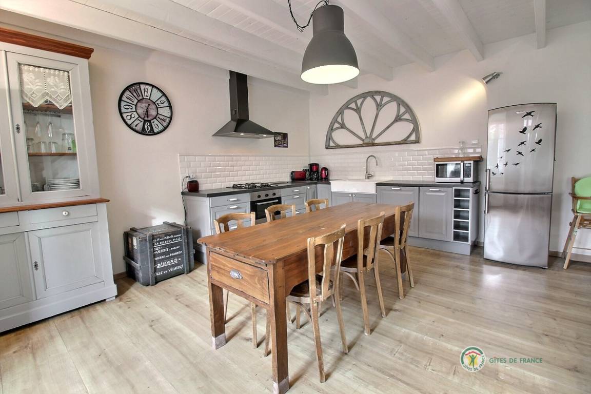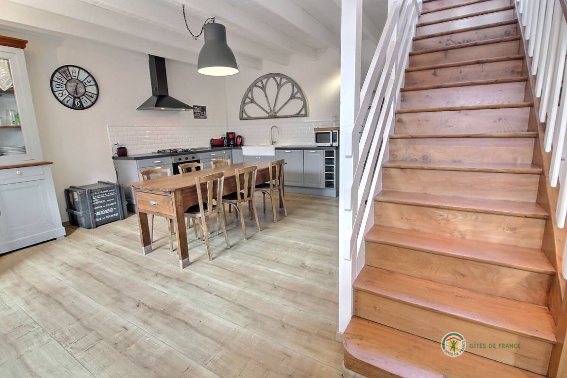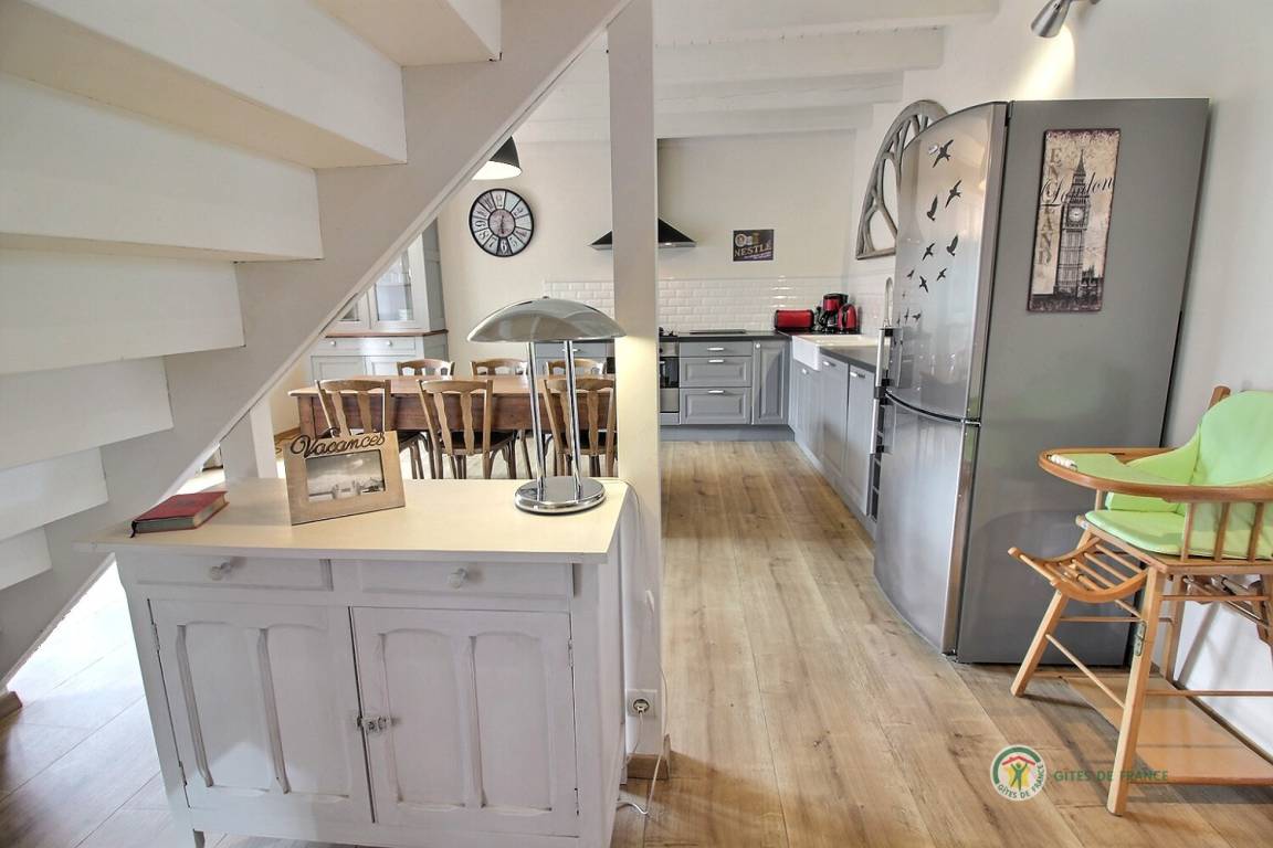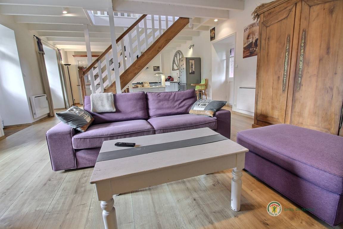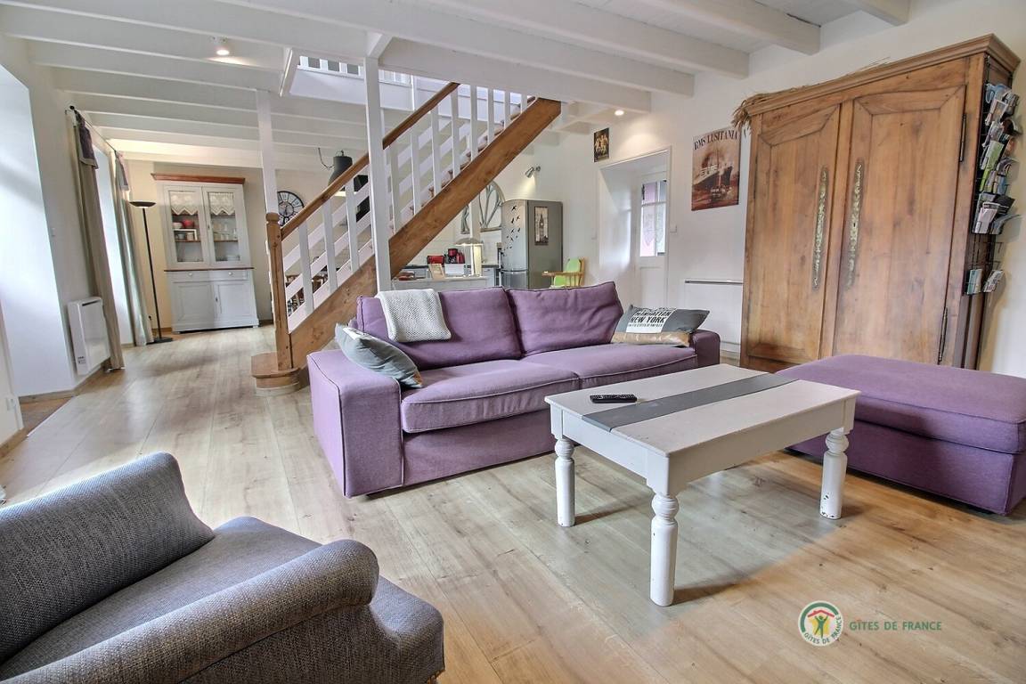 Dieses Ferienhausangebot enthält: Im Erdgeschoss: geräumigen Wohnraum mit einer hübschen Einbauküche von 53 m² mit Holzofen, mit einer Stufe zugängliches, großes Badezimmer (Dusche) und WC. Im 1. Stockwerk: eine große Treppenplattform mit kleinem Kinderbüro, 1 Schlafzimmer ( 3 Betten x 1 Person), 1 Schlafzimmer (1 Bett x 2 Personen), WC. Babyausstattung verfügbar. Geschlossenen Privathof von 120 m² vor dem Haus, und eingezäunten privaten Garten von 200 m² auf der Hinterseite. Kurtaxe zahlbar vor Ort.