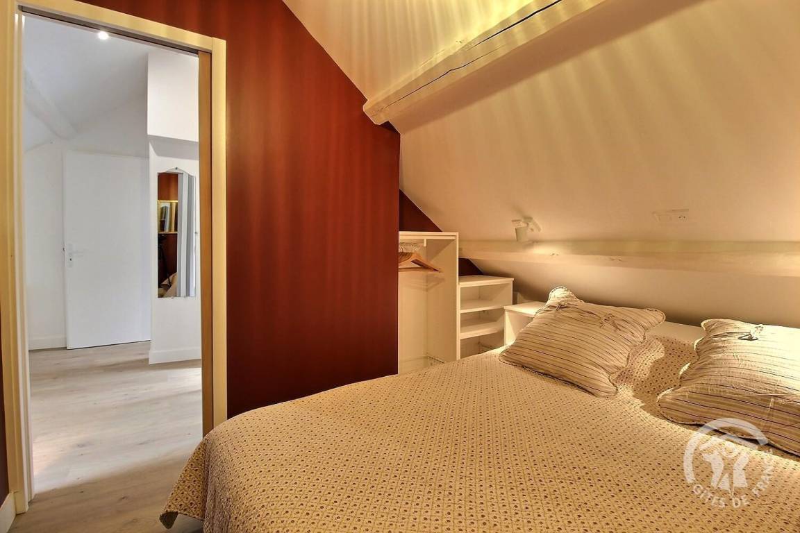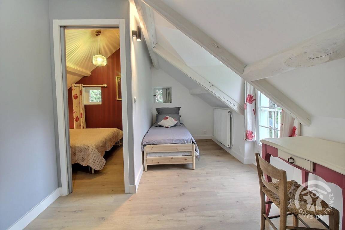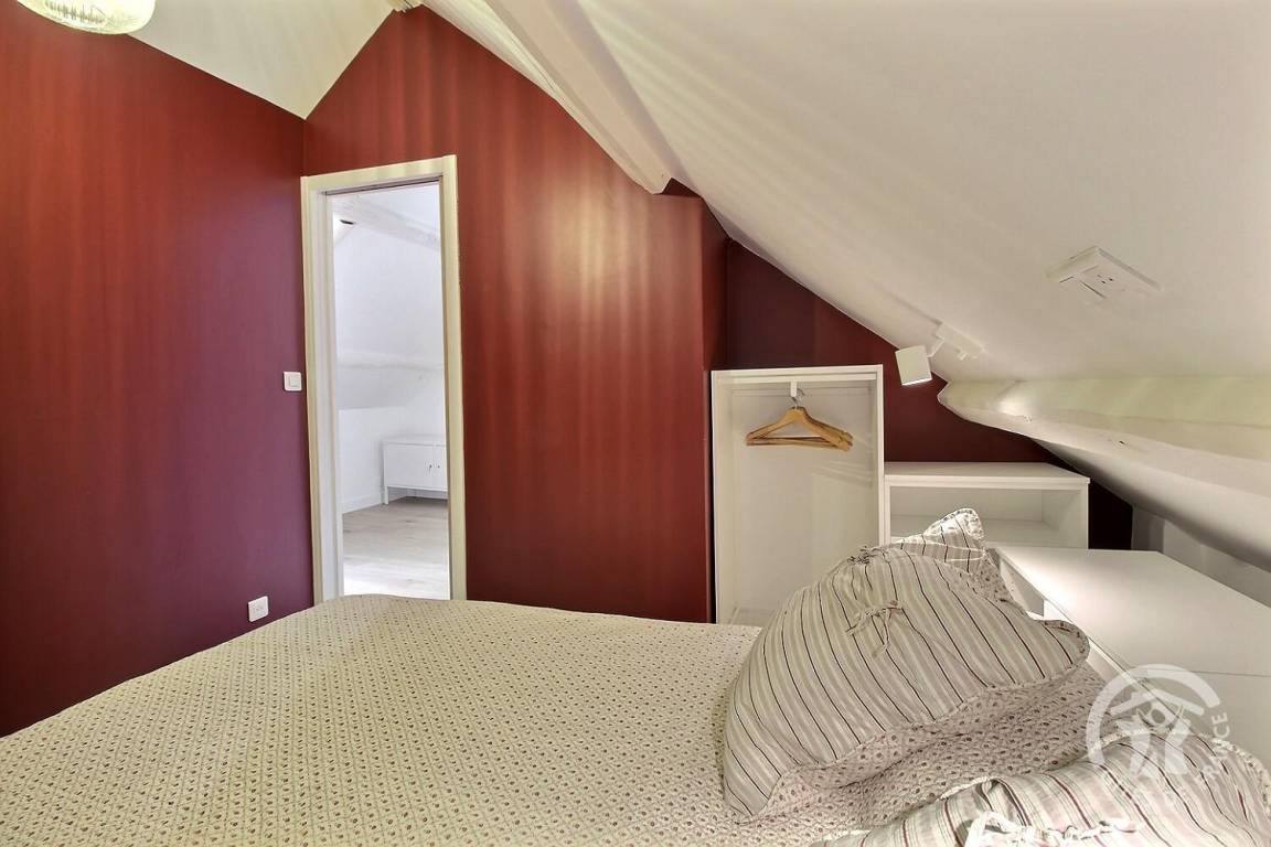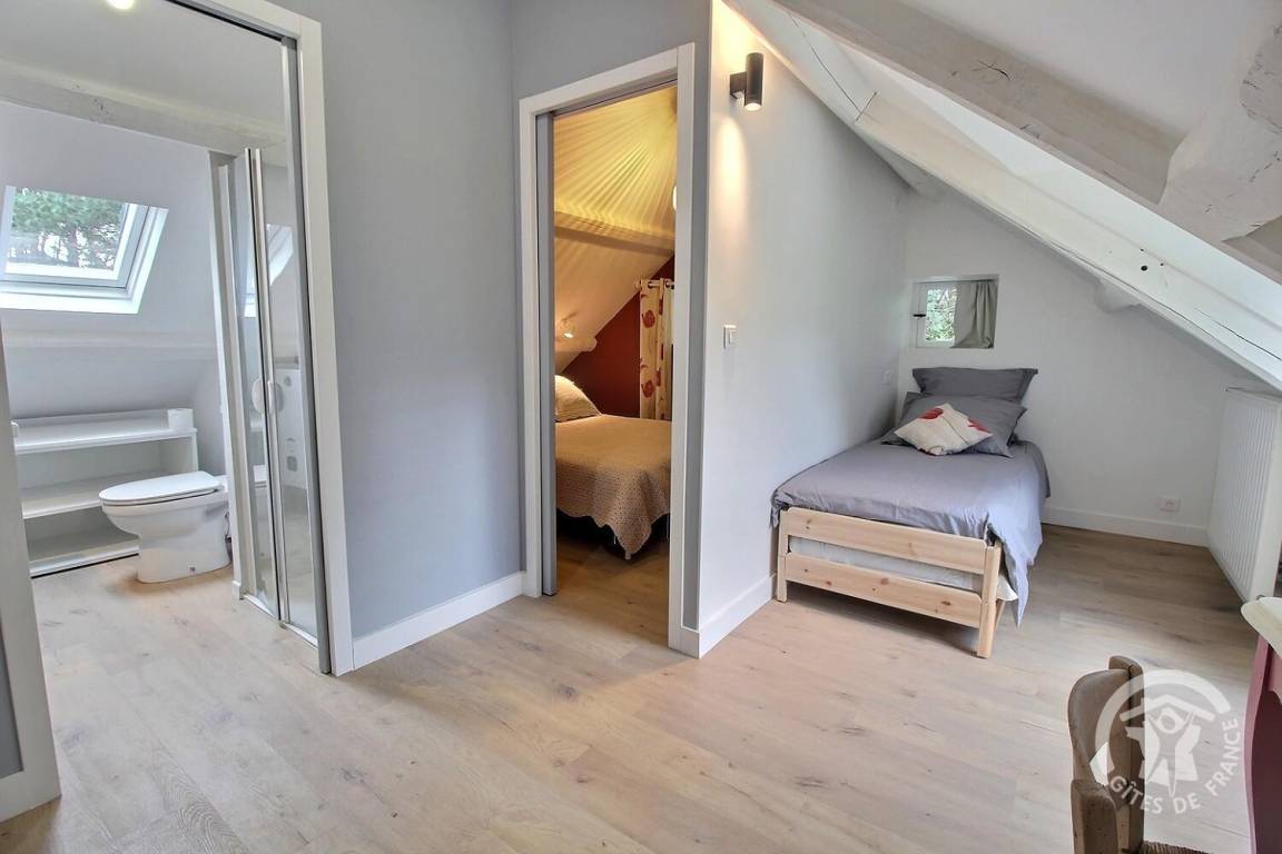 1 großes Schlafzimmer im Dachgeschoss mit verschließbarem Hauptschlafzimmer (160x200-Bett) und (1 90x190-Bett), Badezimmer (Dusche und WC).