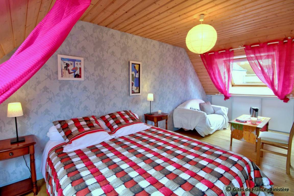„Bon accueil avec cadeau de bienvenue. Nombreux circuits mis à disposition pour les visites et les randos. Gite agréable et très propre dans une rue calme. Très bonne situation par rapport aux différents sites à visiter dans le Finistère. Nous sommes très contents de notre séjour.“