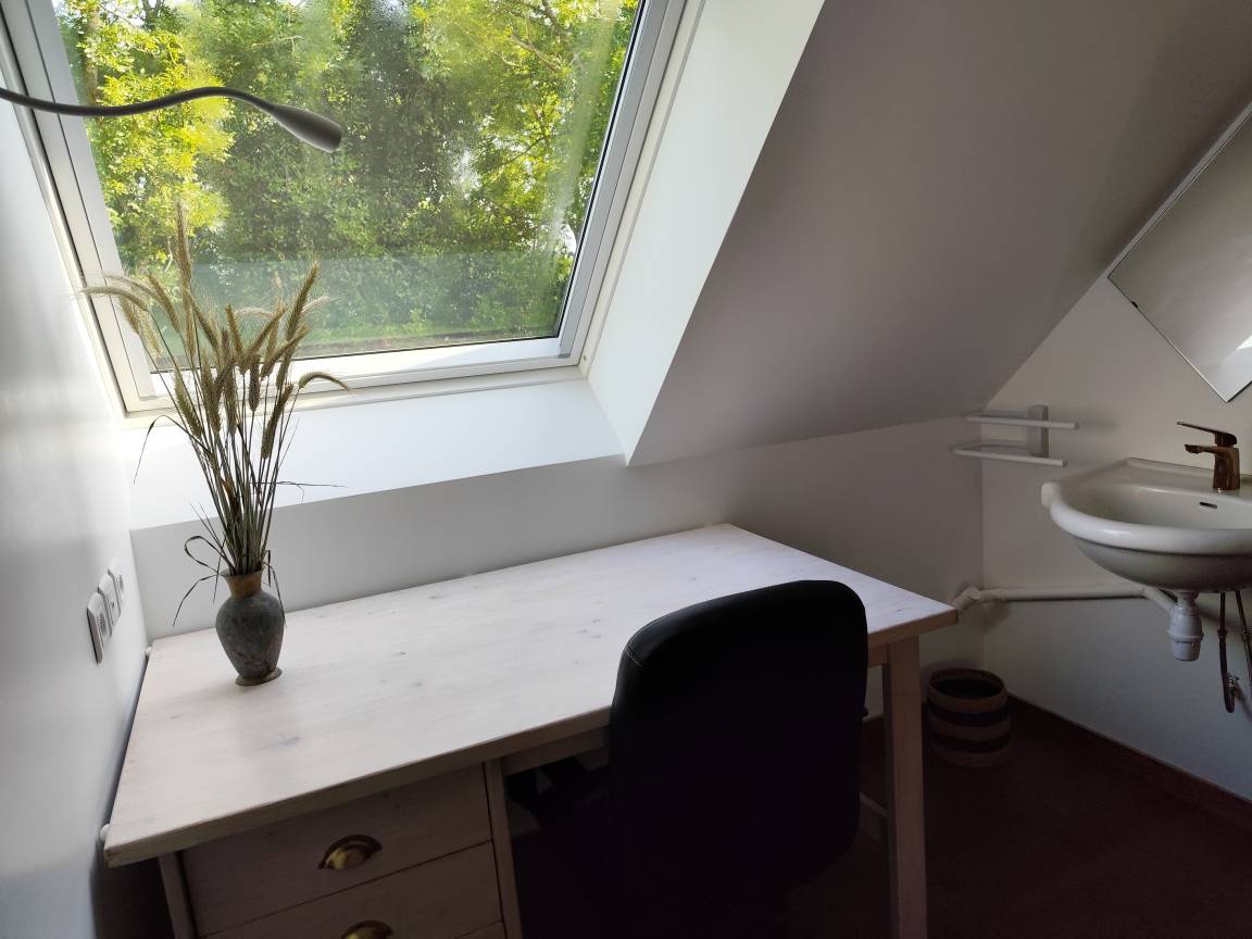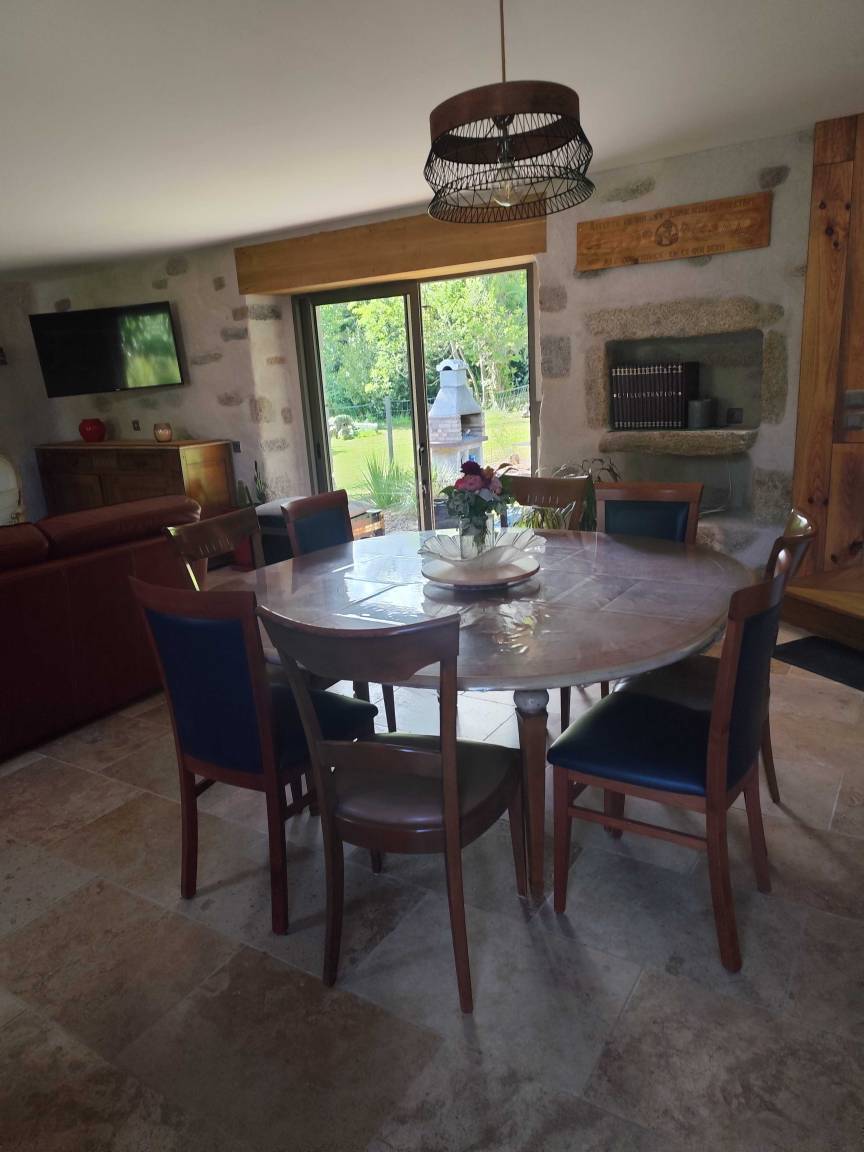 „Nous avons passé deux merveilleuses semaines au sein de cette belle et grande maison confortable et accueillante. Nous avons particulièrement apprécié les différents espaces extérieurs avec vue privilégiée sur la faune et la flore du coin, l’accès à des vélos prêts à rouler et un circuit agréable jusqu’à la plage des Sables Blancs et la proximité de la Chapelle et de la rivière. Accueil parfait des propriétaires !“