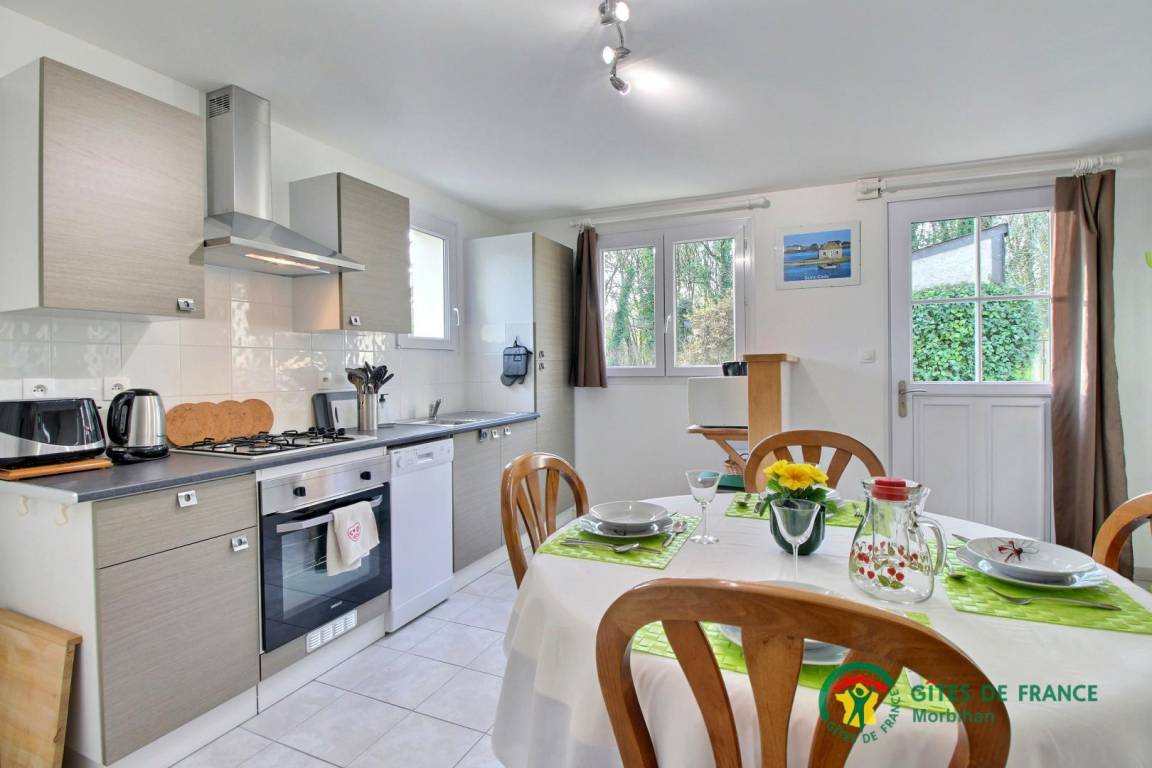 „Gîte très agréable, bien équipé, très bien entretenu (intérieur et extérieur), au calme, sans vis à vis... Le séjour était très agréable malgré la météo mitigée que nous avons eu. Idéalement situé pour visiter la région du golfe, Quiberon et jusqu'à LorientJe vous remercie encore pour le petit cadeau d'accueil ainsi que pour les conseils de visite. Je le recommande“