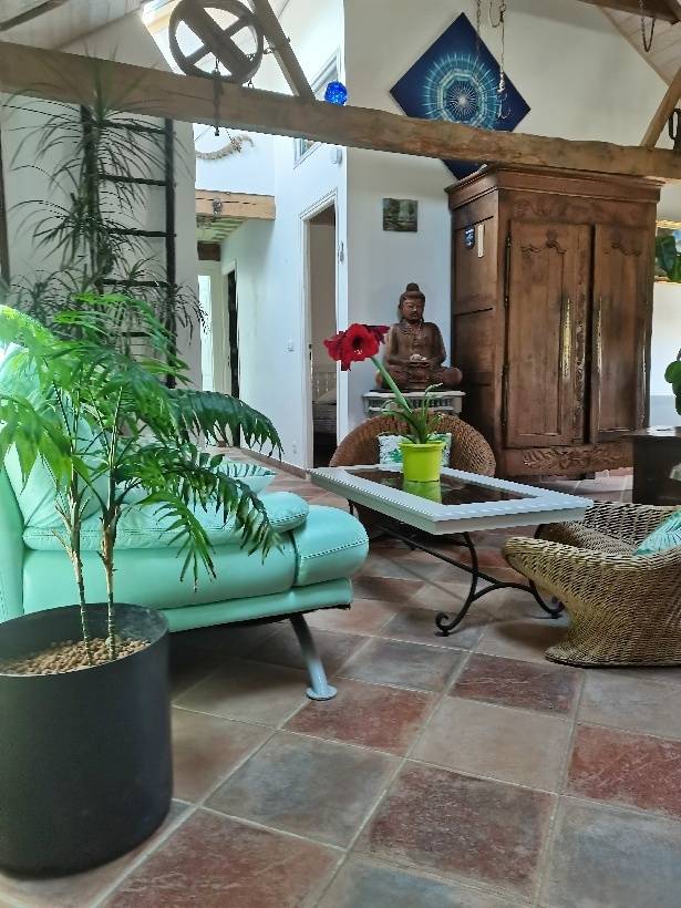 „Accueil correct du propriétaire mais gîte à l étage Gîte ne donnant pas un accès direct au jardin Pb de frigo Pb de poignet de porte dans une chambre Pb de lumière dans la salle de bain Vaisselle limitée Propreté du sol, des ustensiles de cuisine très très limite“