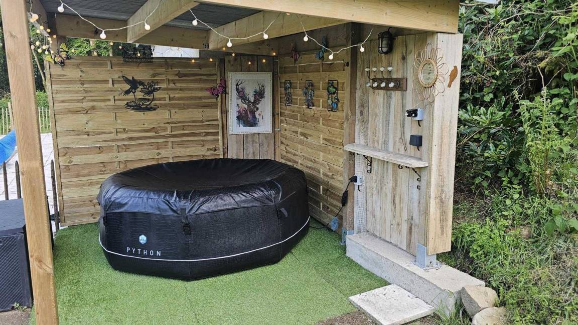 Privater beheizter Pool, beheizt auf 27 °C + aufblasbares Spa für 4 Personen.