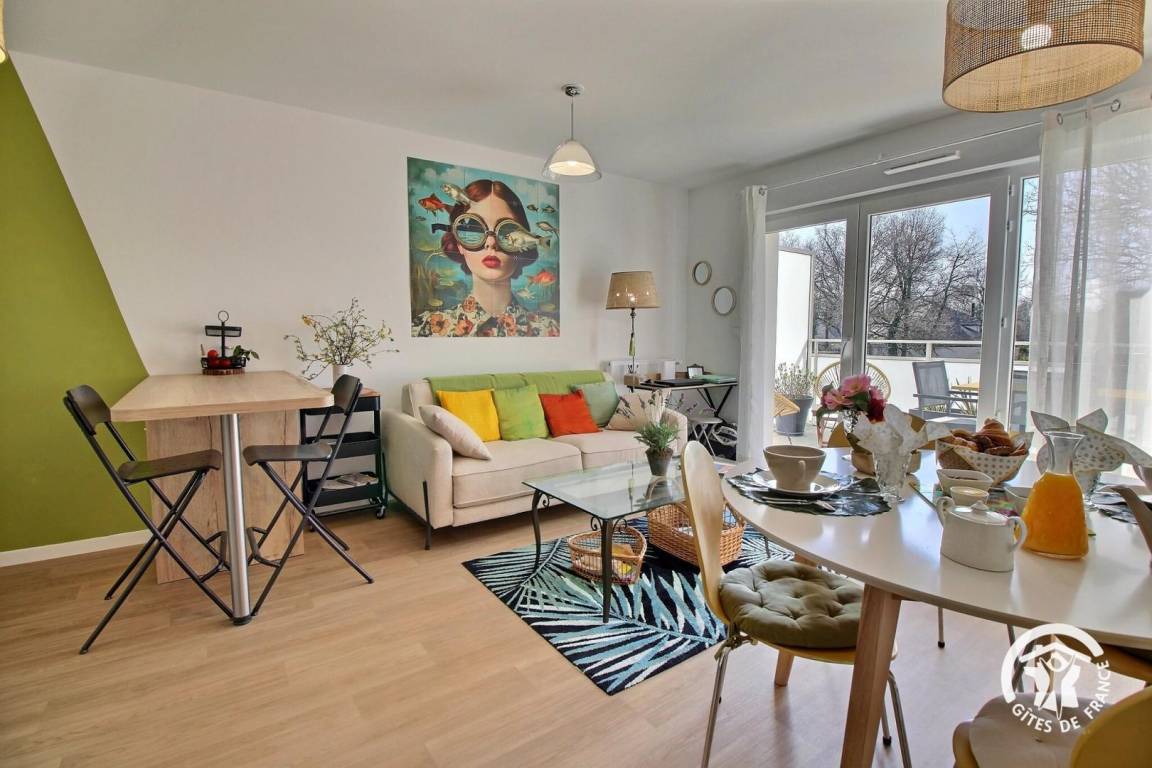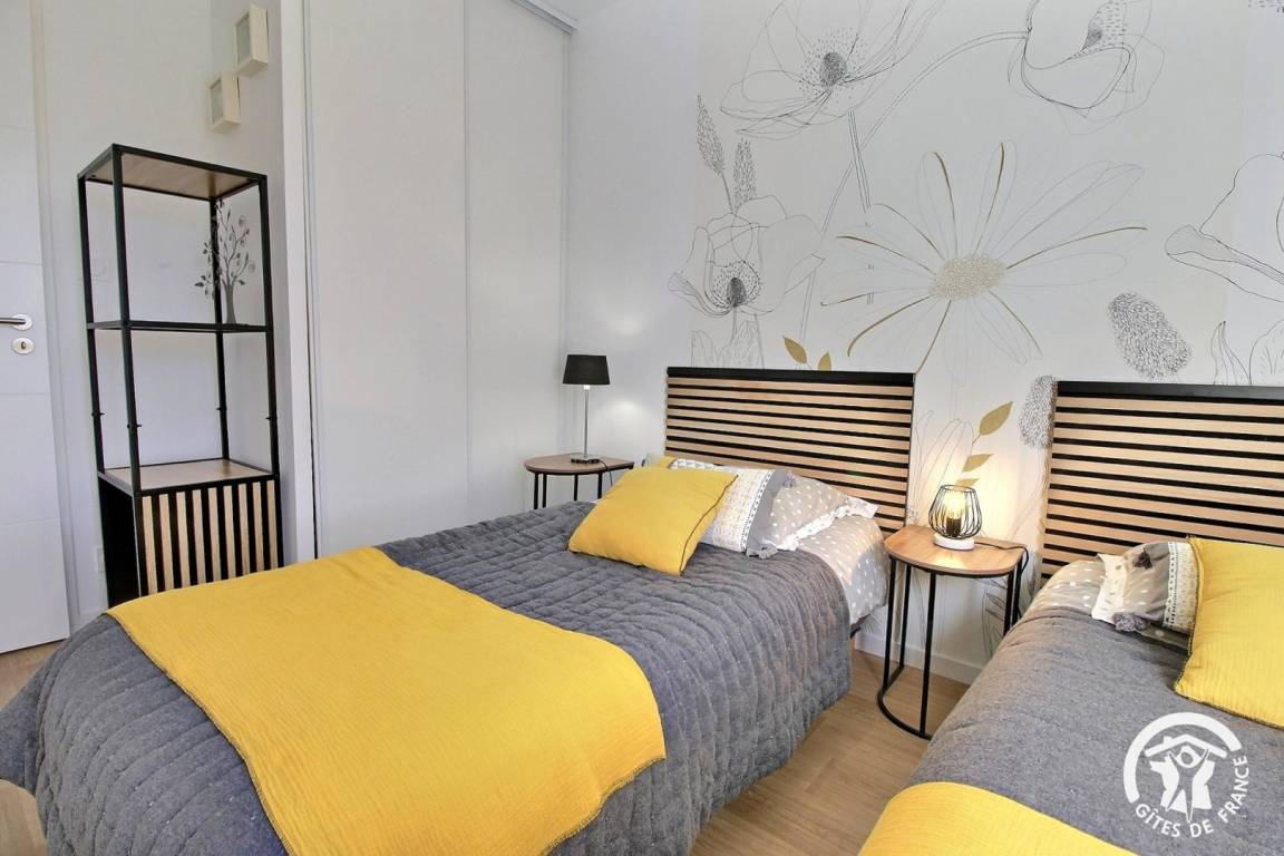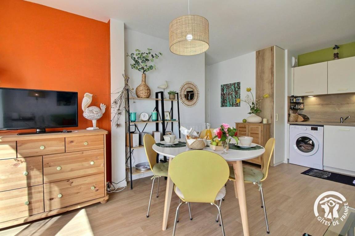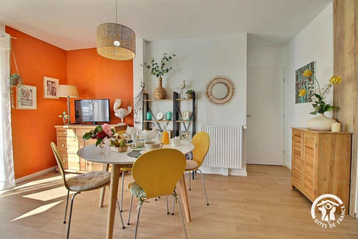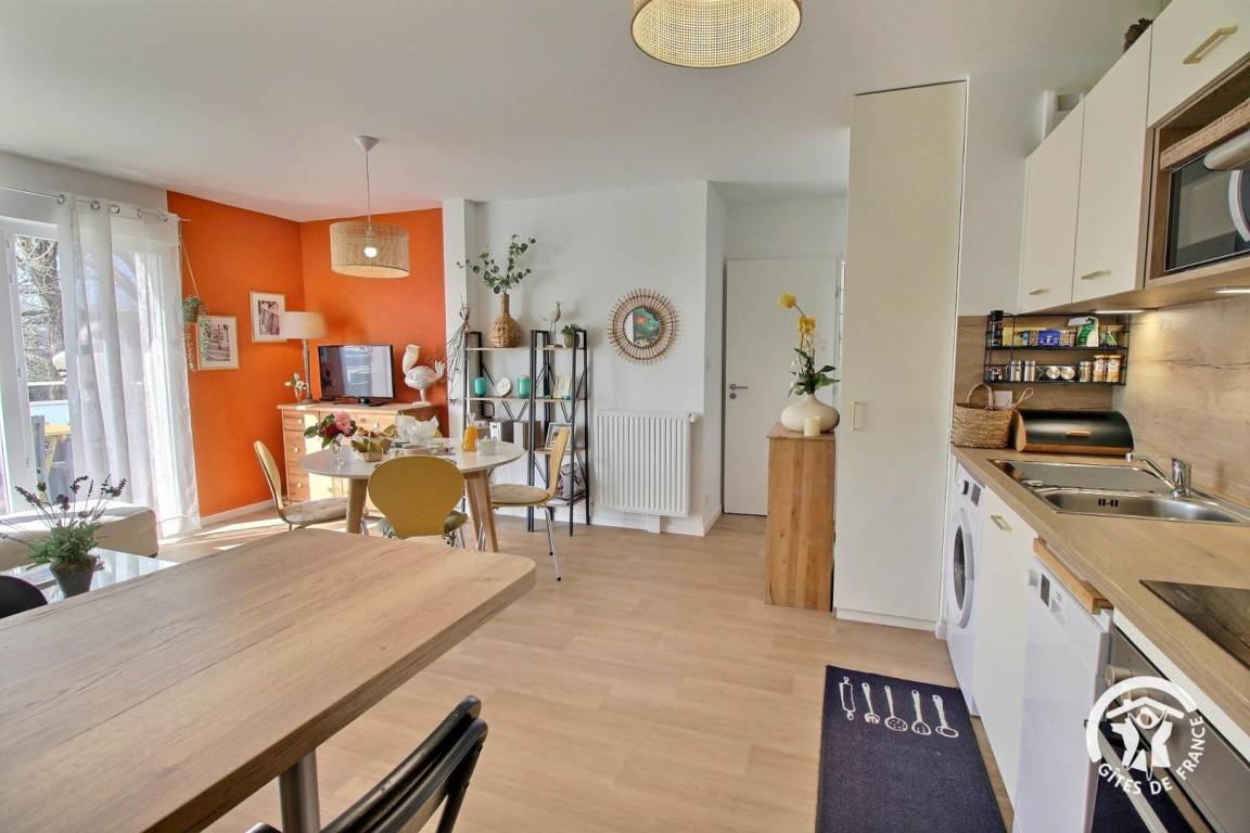„Nous avons apprécié le cadre arboré et calme de cat appartement situé dans une petite résidence neuve, sa décoration accueillante, élégante et joyeuse, son balcon agréablement aménagé. Merci !“