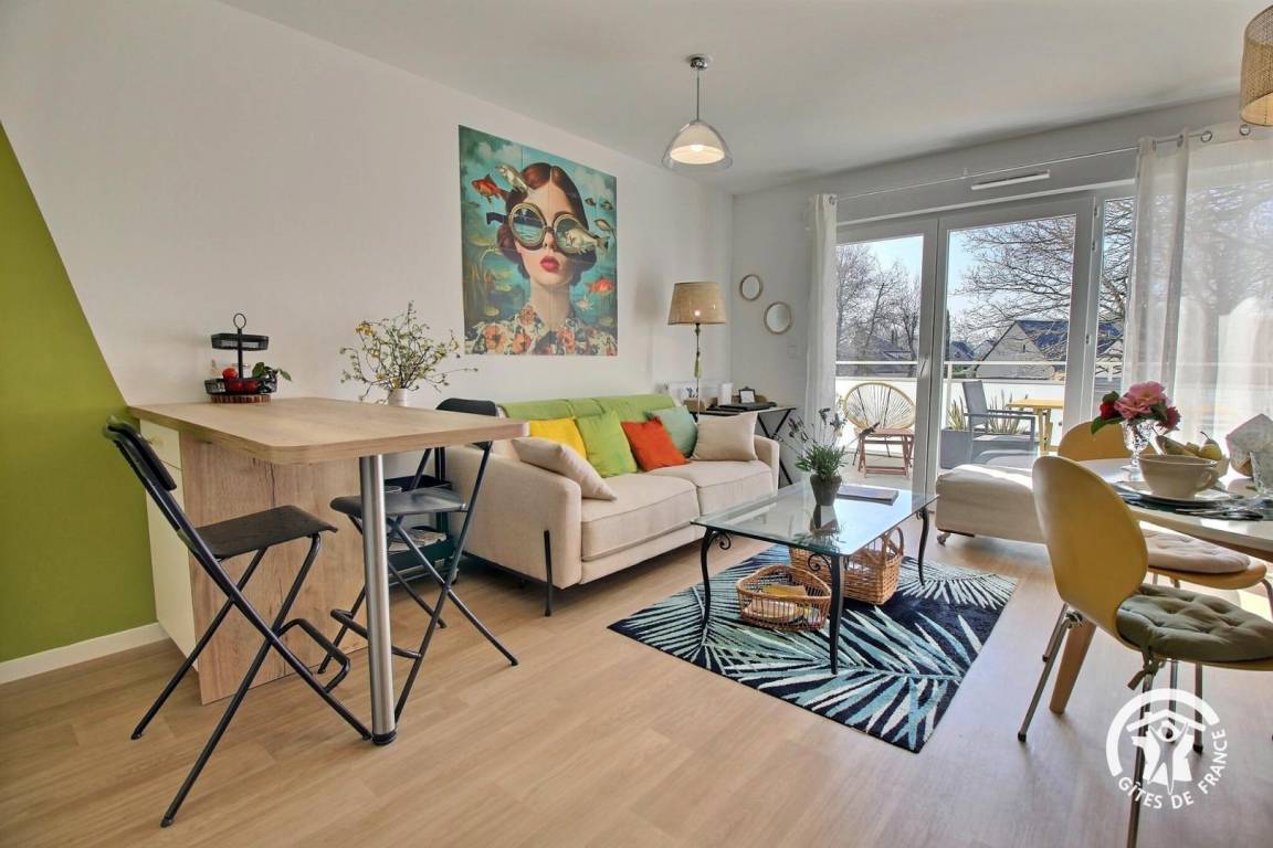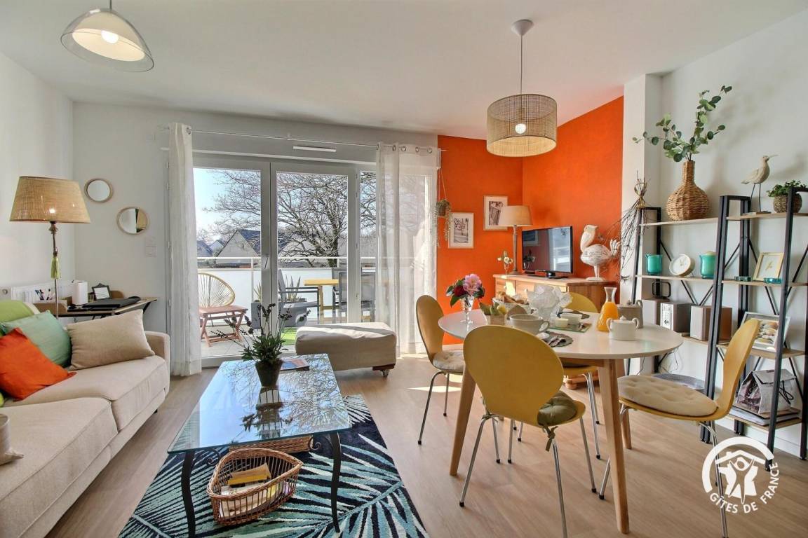 „Très contents du séjour dans cet appartement.Le gîte est proche du centre bourg et de l'Intermarché. Tout peut se faire à pied. Pour garer la voiture, pas de problème, il y avait une place réservée. L'appartement tout neuf, joliment décoré avec beaucoup de goût, est vraiment tranquille, et tout y est pour cuisiner. Nous sommes à 10mn d'AURAY, ou de VANNES. Nous avons pu découvrir cette charmante ville d'AURAY et son petit port ainsi que le panorama du golfe du Morbihan. Nous gardons un bon souvenir de la région (sous le soleil) et ne manquerons pas d'y revenir.“