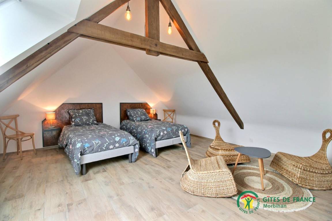 - Im zweiten Stock: ein großes Schlafzimmer unter dem Dach (2 Einzelbetten).