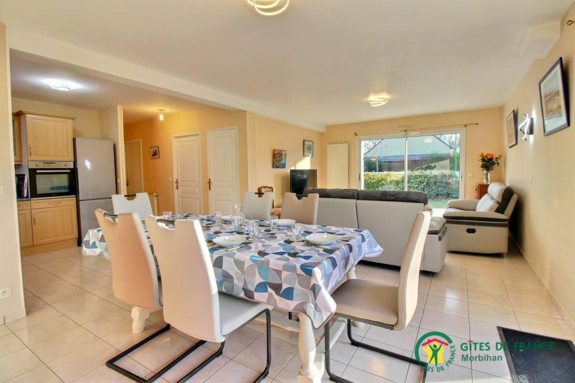 „Merci pour l'accueil chaleureux et les petites attentions lors de l'arrivée et du départ. Le gîte très bien équipé et très propre, tout confort et même plus: Différentes machines en cuisine, four, micro-onde, bouilloire, vaisselle et ustensiles diversifiés, un sèche cheveux dans chaque salle d'eau... Ambiance très cosy, on s'y sent comme chez soi! Literie exceptionnelle. De plus, le gîte est idéalement placé au cœur du Morbihan, dans un lotissement calme et proche de la grande route, ce qui nous a permis de nous déplacer facilement dans toute la région. La place de parking est très large, facile à se parquer. Nous y avons passé une très bonne semaine.“
