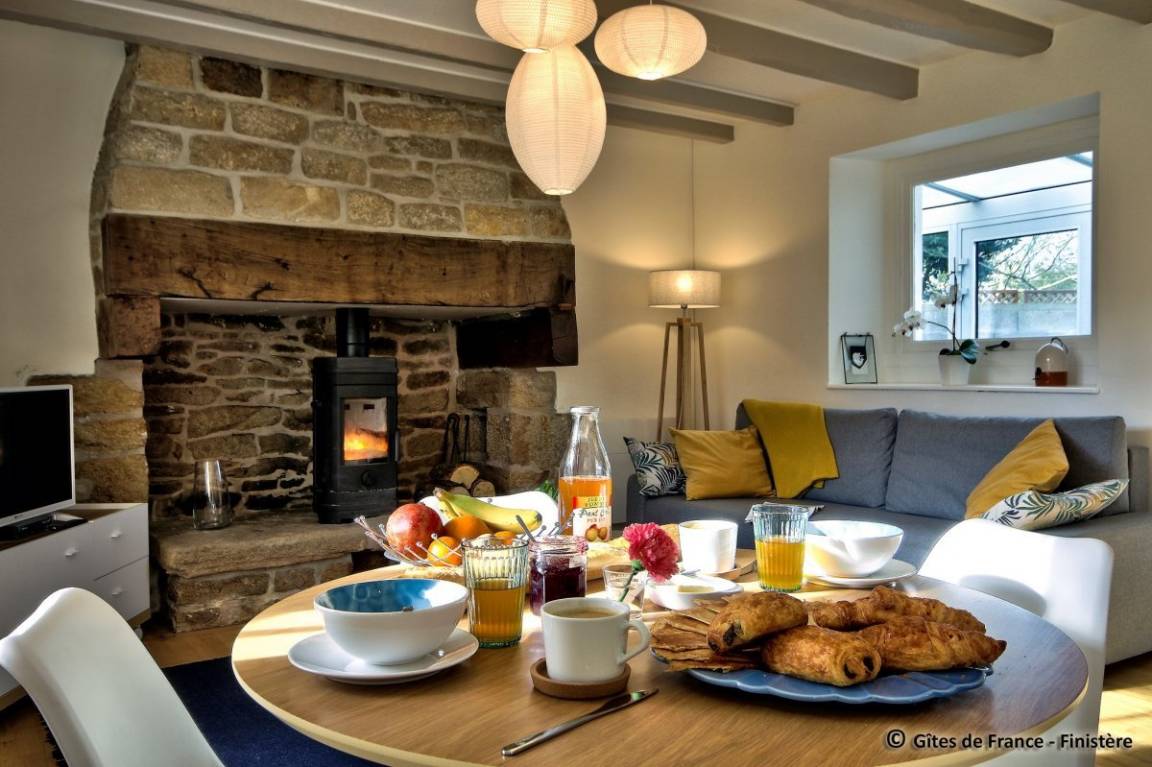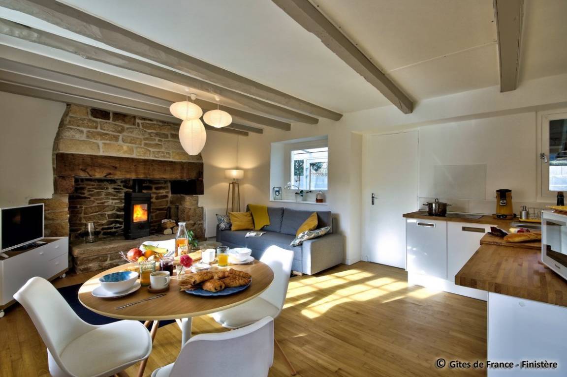 „Très joli gîte, tout équipé, chambre spacieuse et poêle à bois apprécié lors des soirées fraîches. Le mobilier et la déco sont choisis avec goût, la literie est excellente. Lorsque l'on pousse la porte, on se sent tout de suite à l'aise, comme à la maison. Et pour couronner le tout, l'accueil d'une propriétaire très sympathique, souriante et chaleureuse !Si vous souhaitez un séjour reposant, ponctué de promenades sur la plage (12mn en voiture jusqu'à Penhors), alors foncez vous ne serez pas déçus :)“