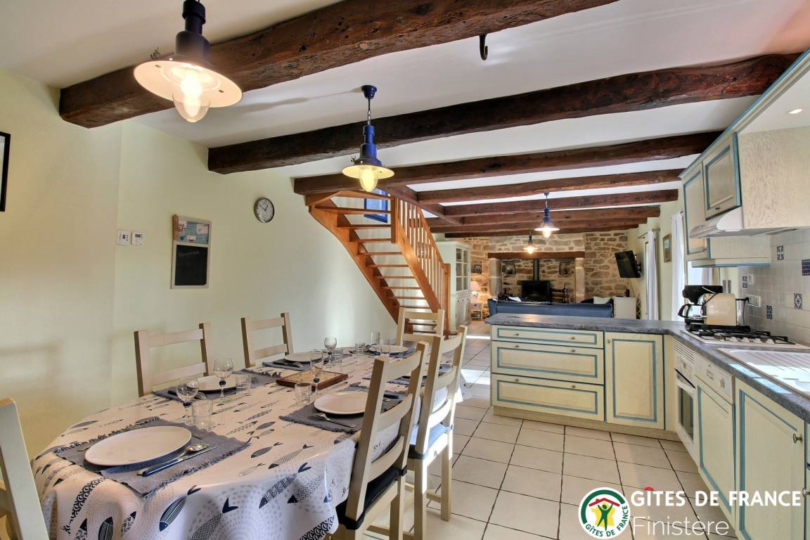 „This lovely old stone Gite dating from 1833 is in a quiet hamlet with a South-facing sunny front garden. Private parking opposite. A 10 minute walk gets you into Plogoff and the café/epicerie, restaurants etc. Good base for coastal walks and cycle rides. Only 10 mins drive from the large sandy surf beach at Baie de Trepasses with free parking. Audierne is the nearest town with a Leclerc supermarket and in town cafes by the port, poissonnerie etc Up on the cliffs by Pointe du Van is a great bar/restaurant called Aux Pilleurs d'Epave which has fabulous Ile de Rudy oysters. Many local beers and a good selection of wines by the glass. The pizzeria in Plogoff does fresh local fish and chips (haddock when we went) which was good.“