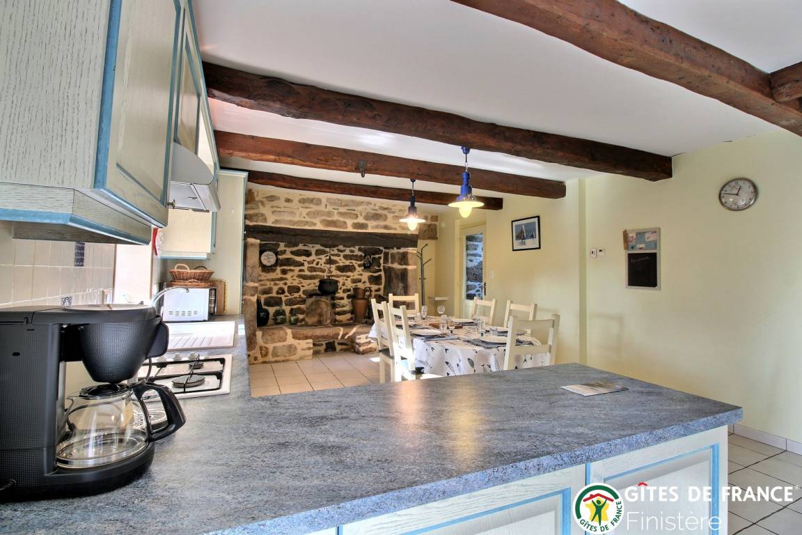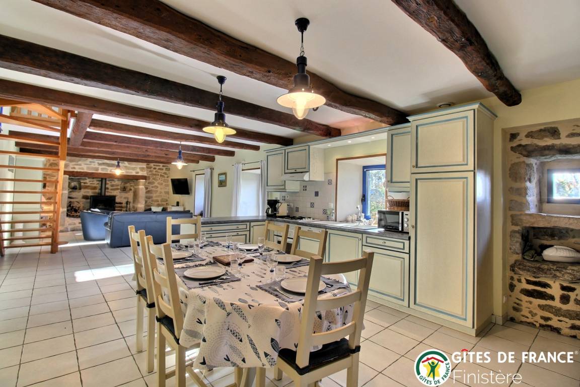 Alleinstehendes Bauernhaus aus dem Jahre 1838 nur 4 km von der Landzunge Pointe du Raz entfernt. EG: großer Eß-/Wohnraum mit Einbauküche und 2 Kaminen (Holzofen), Garderobe, WC mit Waschbecken. 1.Stock: 2 Doppelzimmer, Zweibettzimmer, Dusche, sep. WC. E-Heizung. Eingefriedeter blumenreicher Hof, Gartenmöbel, Grill. Garten, Obstgarten.
