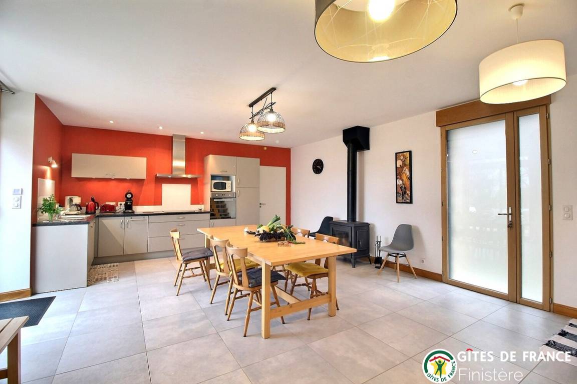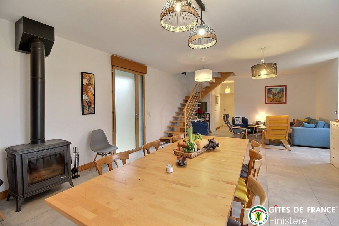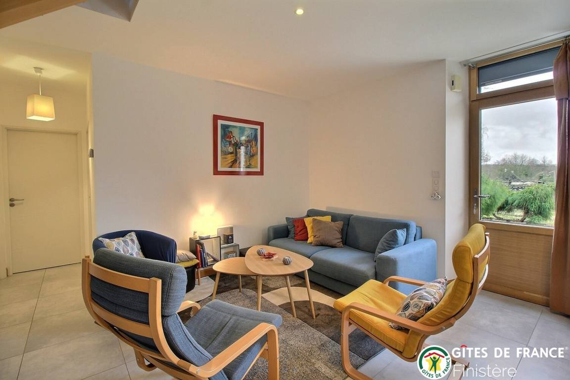 „We had a lovely stay in this modern cottage in the village of Plogonnec, near Locronan. The hosts couldn't have been more helpful and left a lovely basket of fresh vegetables from their greenhouse when we arrived. The hosts live on the same property, but the cottage is very private and looks out over a lovely meadow and lake towards a minor road with minimal traffic. There are lovely walks in the area, including into the historic village of Locronan and nearest beaches are a 20 minute drive away. happy to recommend!“