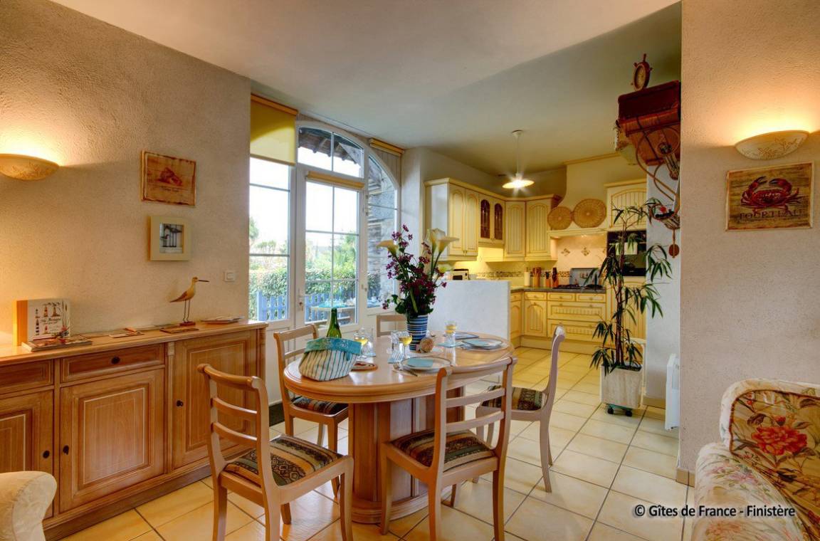 „Gite charmant, confortable, propre, très bien équipé, idéal pour parcourir la presqu'ile de Crozon, situé a quelques kilomètres des plages et côtes, nombreux commerces dans le village de Plomodiern; excellent accueil du propriétaire.“
