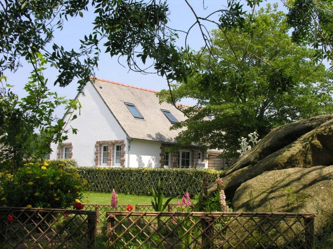 Haushälfte (Fischerhaustyp) auf dem Grundstück eines ehemaligen Bahnhofs am Tor des Armorika-Naturparks. Im Bahnhofgebäude wurden komfortable Gîtes eingerichtet. Schöne Innenräume. EG: Diele, Wohn-/Eßraum mit Kochecke, Holzofen und TV, sep. WC. 1.Stock: geräumiges Schlafzimmer mit gr. Doppelbett (160x200) und Einzelbett, Dusche mit WC. E-Heizung.
