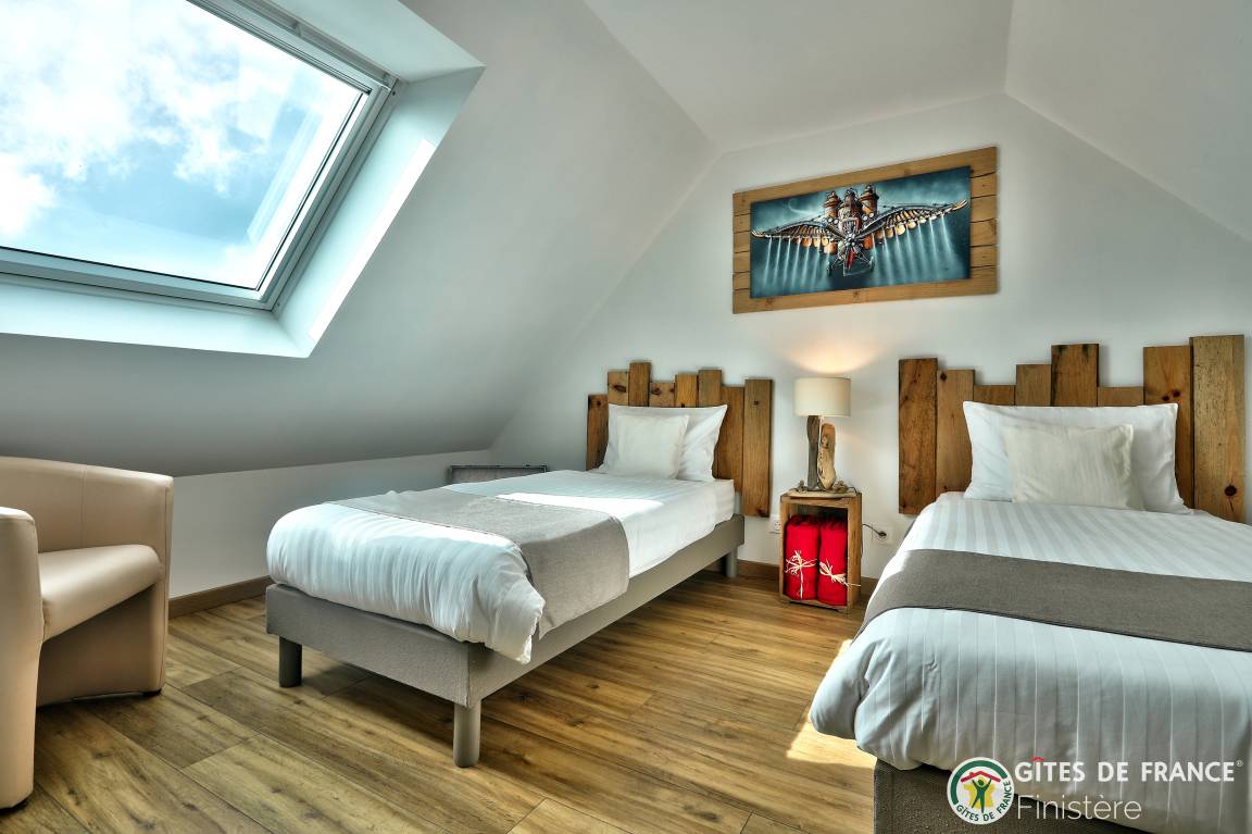 „Nous avons été très bien accueillis au gîte Terre d Embruns par Hélène et Daniel, les propriétaires. Le gîte est tout à fait conforme à ce que nous avions pu voir sur gîte de France. Décoré avec goût et très bien équipé, nous nous y sommes tout de suite sentis comme chez nous. La tranquilité des lieux et l emplacement idéal pour visiter le Finistère, nous ont conquis. Le cadeau de bienvenue nous laissera un souvenir de cet excellent séjour. Merci“
