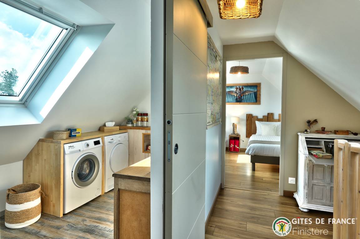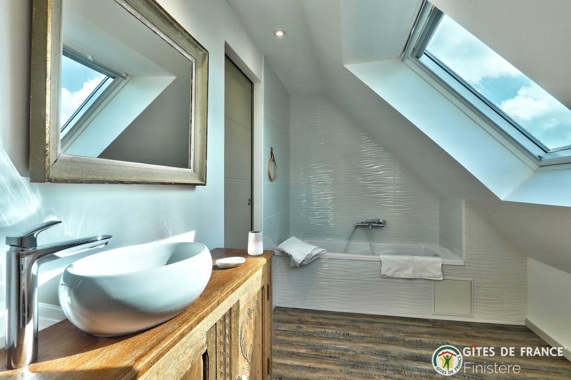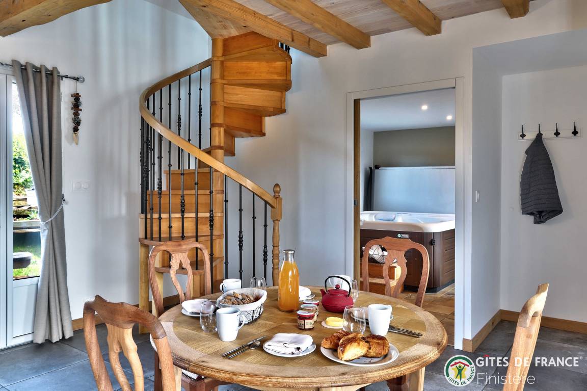 „Gite bien situé pour visiter tout le Finistère, au calme à 500m d'une magnifique plage. Parfaitement propre, belle déco, tout le confort nécessaire, jacuzzi privatif, propriétaires accueillants et discrets. Tout ce qu'il faut pour passer un excellent séjour.“