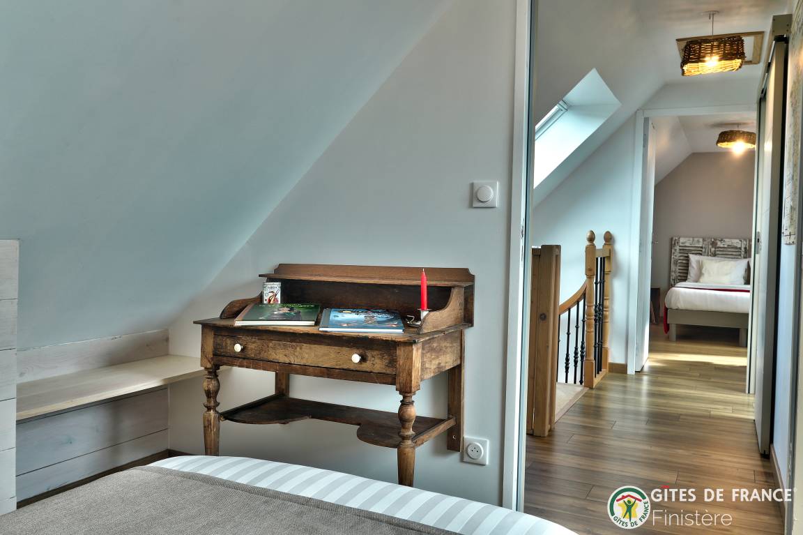 „Charmant gîte très bien situé (1km de la magnifique plage de lestrevet et de nombreux points de vue, à pied ça se fait bien). Belle campagne vue mer. Rien ne manque dans ce gîte décoré avec goût. Le SPA est appréciable après de belles randonnées. Magnifique pièce bien entretenue (douche a disposition) qui permet de profiter du jacuzzi tous les temps. Gîte situé sur le terrain des propriétaires mais pas de vis à vis, hôtes discrets, charmants. Respect de l’intimité. Le petit jardin à l’arrière clôturé permet d’être serein avec un toutou. Nous pensons déjà revenir et l’avons recommandé.“