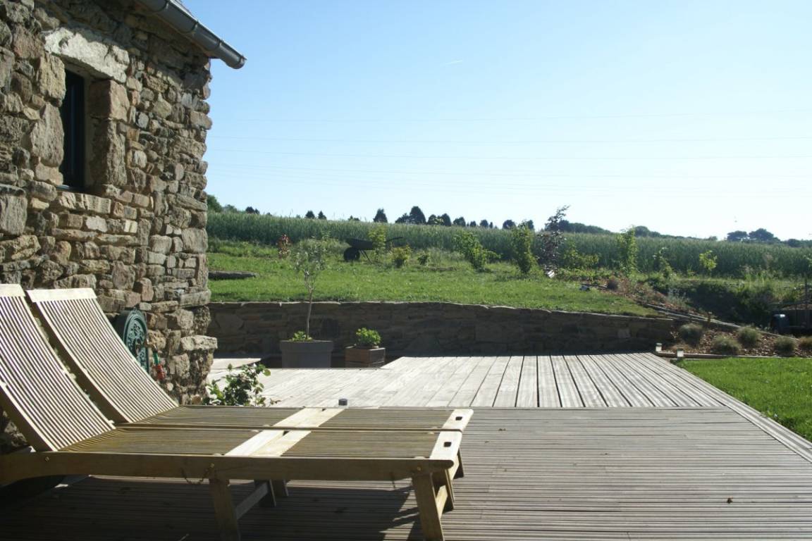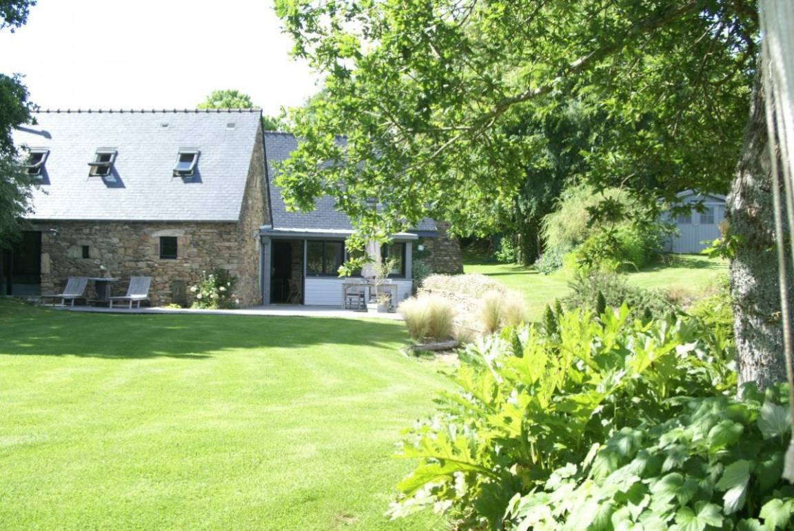 2 durch ein Glasdach verbundene im lokalen Stil gebaute Häuser zwischen Land und Meer bilden hier einen unabhängigen Gîte mit Holzterrasse (70m²) und großem Garten mit Baumbestand. EG: Wohn-/Eßzimmer mit Küche (in der Veranda), Sitzecke mit Kamin, Doppelzimmer (Bettbreite 1,60m) mit Terrassenausgang, Dusche, sep. WC.1. Stock: Zweibettzi., Mezzanine mit Leseecke. Die Betten sind bezogen. E-Heizung. Home Kino, WiFi. Garten, Gartenmöbel, Grill. Terrasse.