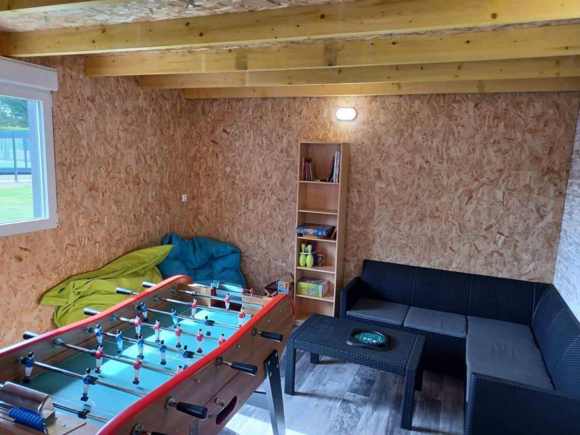 „Nous avons passé un excellent week-end à 2 familles avec un enfant de 9 ans et un ado de 13. Tout le monde a été ravi! L’accueil a été adorable: Adaptabilité des horaires, petites gourmandises de bienvenue…La literie était top, le jardin impeccablement entretenu, la pièce de jeux était vraiment très pratique (et super bien isolée, personne n’entendait nos éclats de voix lors des tournois de baby-foot acharnés !). Nous avons apprécié la piscine dont la température était idéale (et sans goût de chlore). Le ménage était impeccablement fait et la cuisine possèdait suffisamment de casseroles/ grands plats pour 6 personnes. Et cerise sur le gâteau des chevaux juste à côté qui se sont fait câliner tous les jours, des moutons, des poules, des oiseaux partout… Un week end de calme et de plaisir! (J’ajoute: Très bien situé: Le bourg est à moins de 5 minutes en voiture avec boucherie, boulangerie, Super U…)“