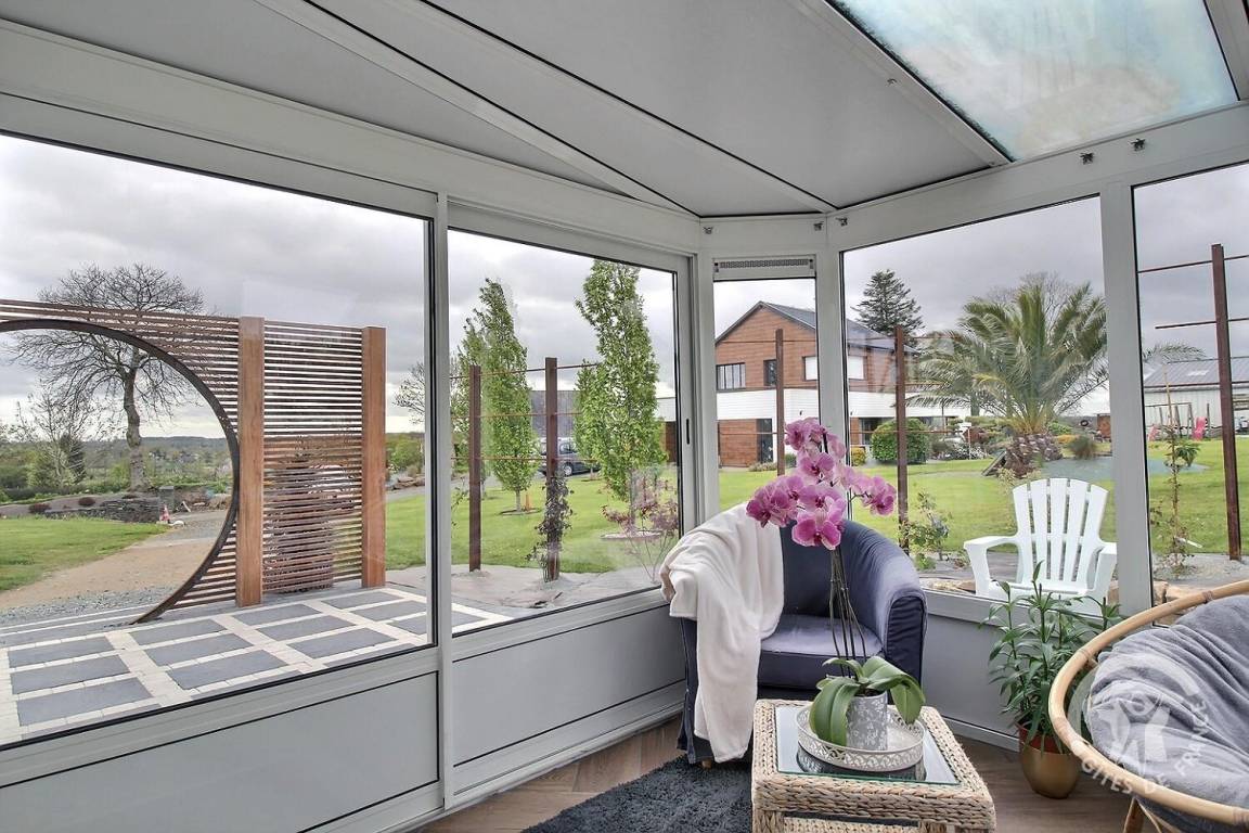 Empfangsveranda mit Ruhebereich, Wohnzimmer mit Einbauküche, 1 Schlafzimmer mit Zugang zur Terrasse (1 140x190-Bett), Badezimmer (Dusche) und separates WC.