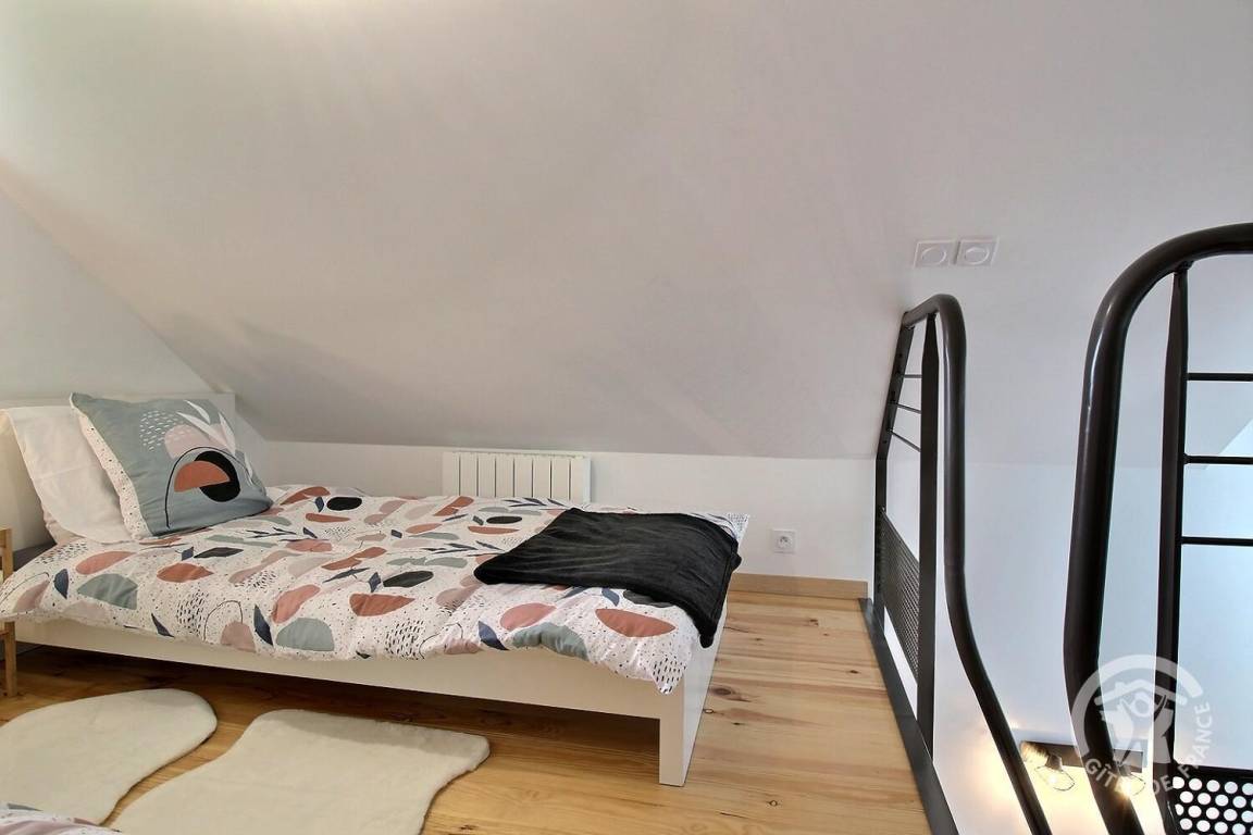 Es besteht die Möglichkeit, 2 Personen auf einem Zwischengeschoss im Dachgeschoss zu schlafen, das über eine steile Treppe erreichbar ist und nicht für Kinder unter 10 Jahren geeignet ist.