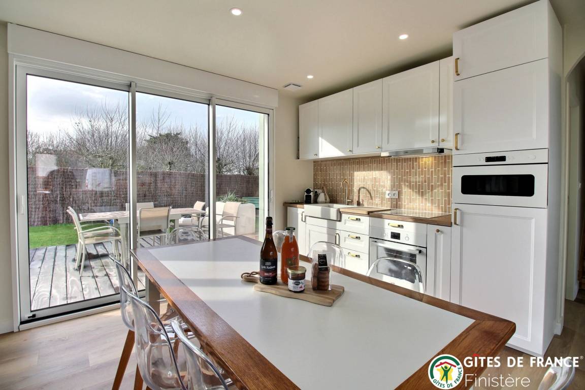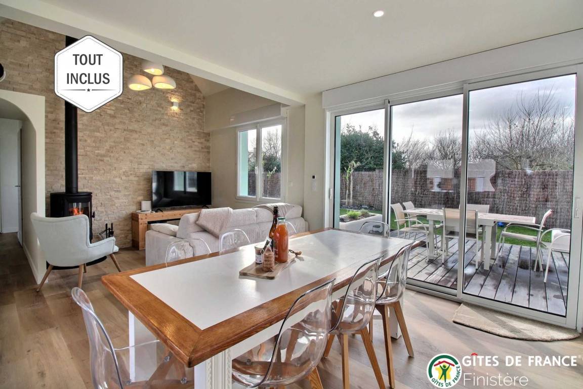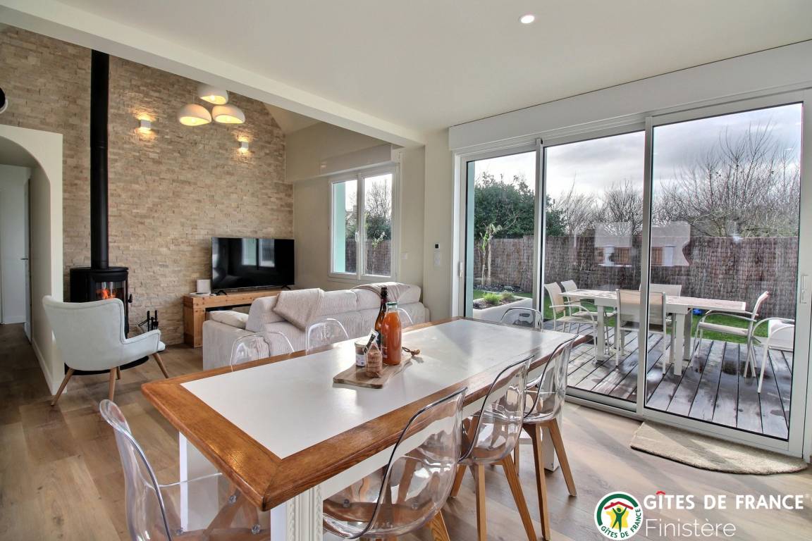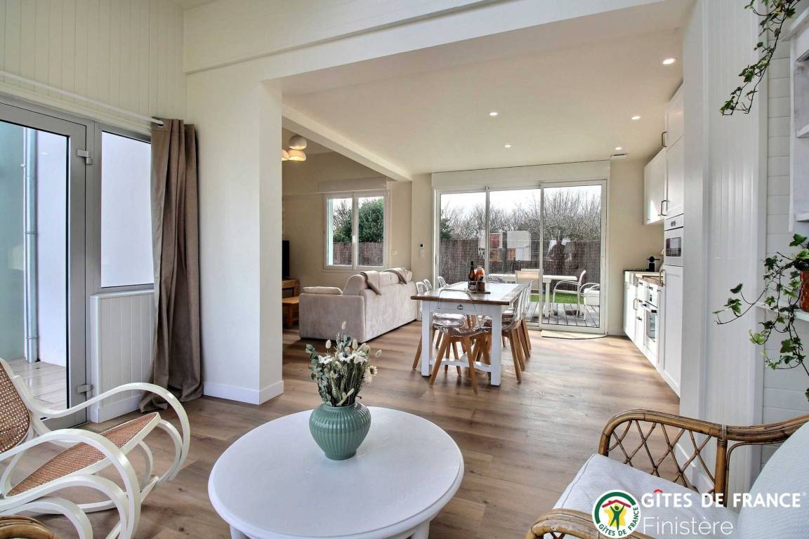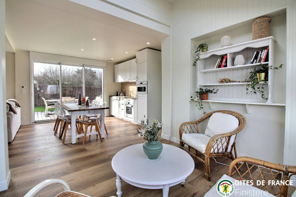 „Jolie maison pleine de lumière à deux pas de la plage nichée dans une impasse bien à l'abri pour un maximum de calme. Le petit coin salon pour nous reposer de la journée est un petit cocon. Le coin télé avec le poêle à bois pour nous réchauffer pour les jours très frais. Merci à nos propriétaires d'avoir rendu notre séjour très agréable.“