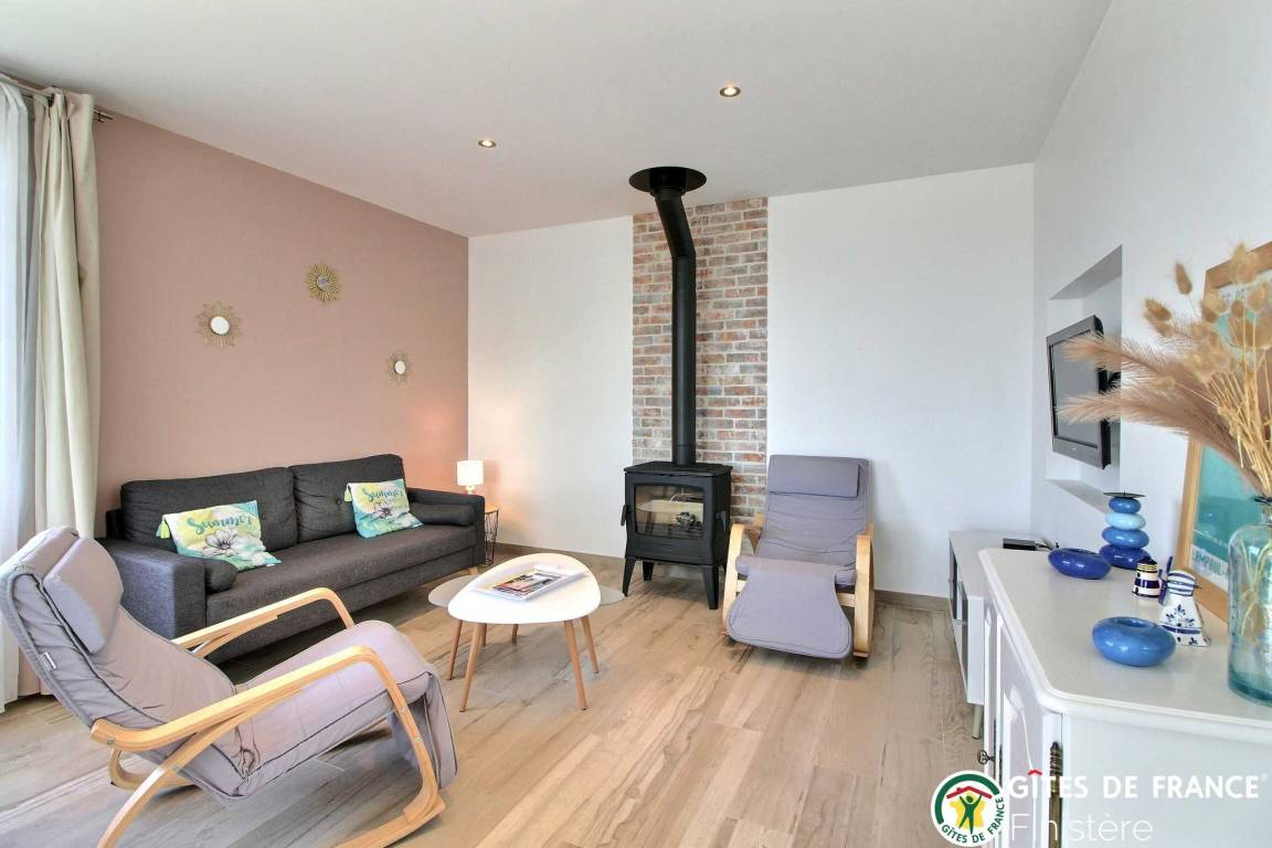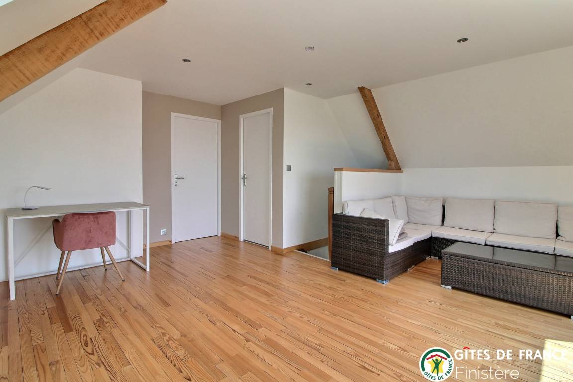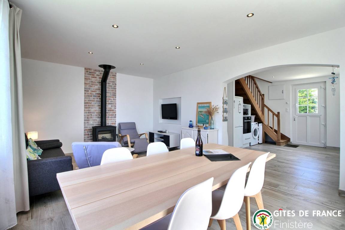 „Gîte très bien situé pour qui veut aller au bout du monde, pour une retraite au contact de la nature. Le lieu est très apaisant au cœur de l'hiver. Le gîte est très bien équipé, la vue sur la mer d'Iroise est un vrai plus, que l'on soit en train de cuisiner, de faire son lit ou de bouquiner dans le salon à l'étage. Un bémol: La salle de bain trop juste pour 6 personnes. Une seconde douche serait bienvenue.“