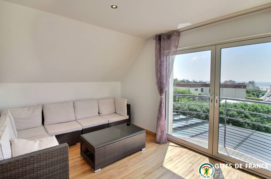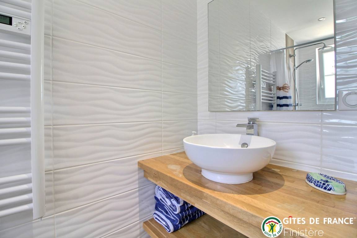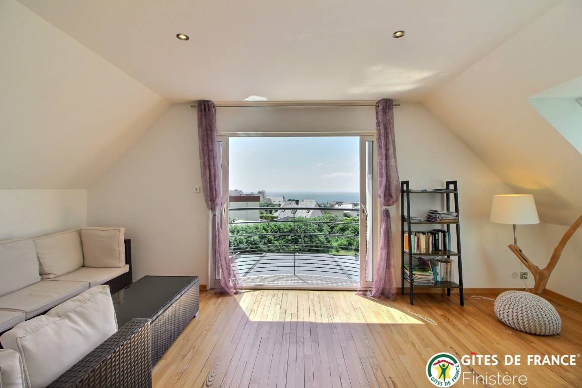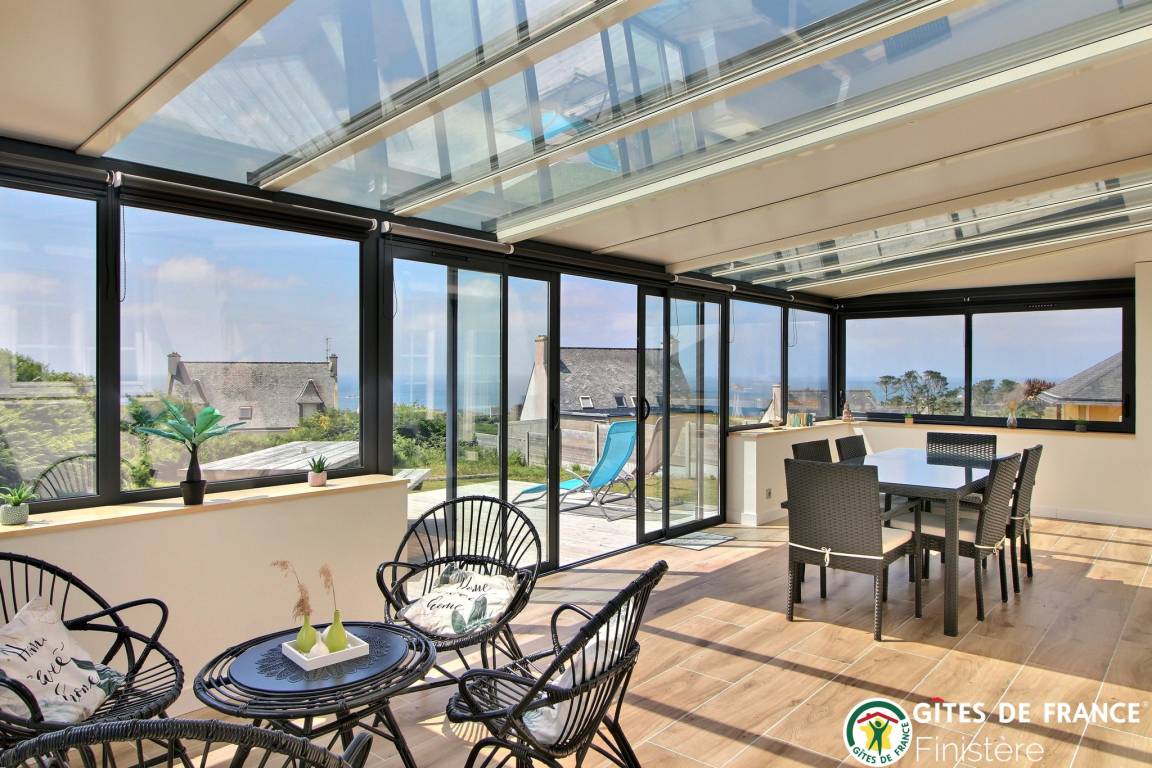 „Gîte, avec vue mer, propre et bien conçu, où l'on se sent à l'aise, bien situé pour sillonner la région. La véranda permet de profiter pleinement du paysage par tous les temps. Merci à Yann pour son accueil et son attention de bienvenue. Juste un petit bémol, une douche à l'étage serait un plus. A recommander.“