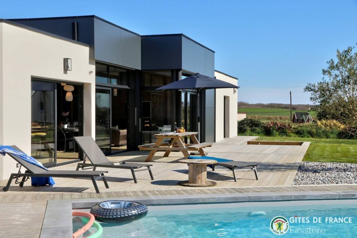 „Nous y avons passé deux semaines magnifiques. La maison est superbe, très confortable et parfaitement équipée. Elle est idéalement située, dans un environnement calme, à proximité de superbes plages, falaises et phares. Tout correspond à la description, mais en réalité c’est encore plus beau que sur les photos !Le propriétaire est très sympathique, toujours disponible en cas de besoin, et nous a réservé un accueil chaleureux. Nous avons également bien profité de la belle, grande piscine chauffée. Un séjour parfait, des vacances inoubliables. Nous recommandons vivement !“