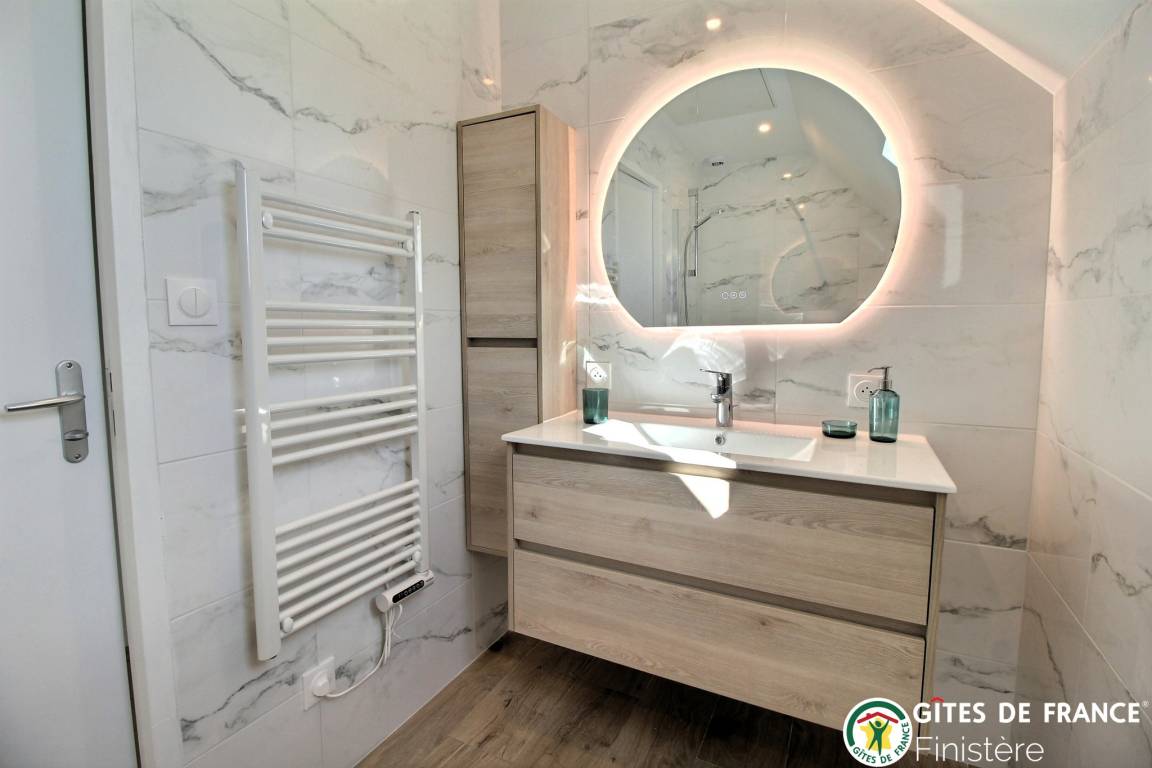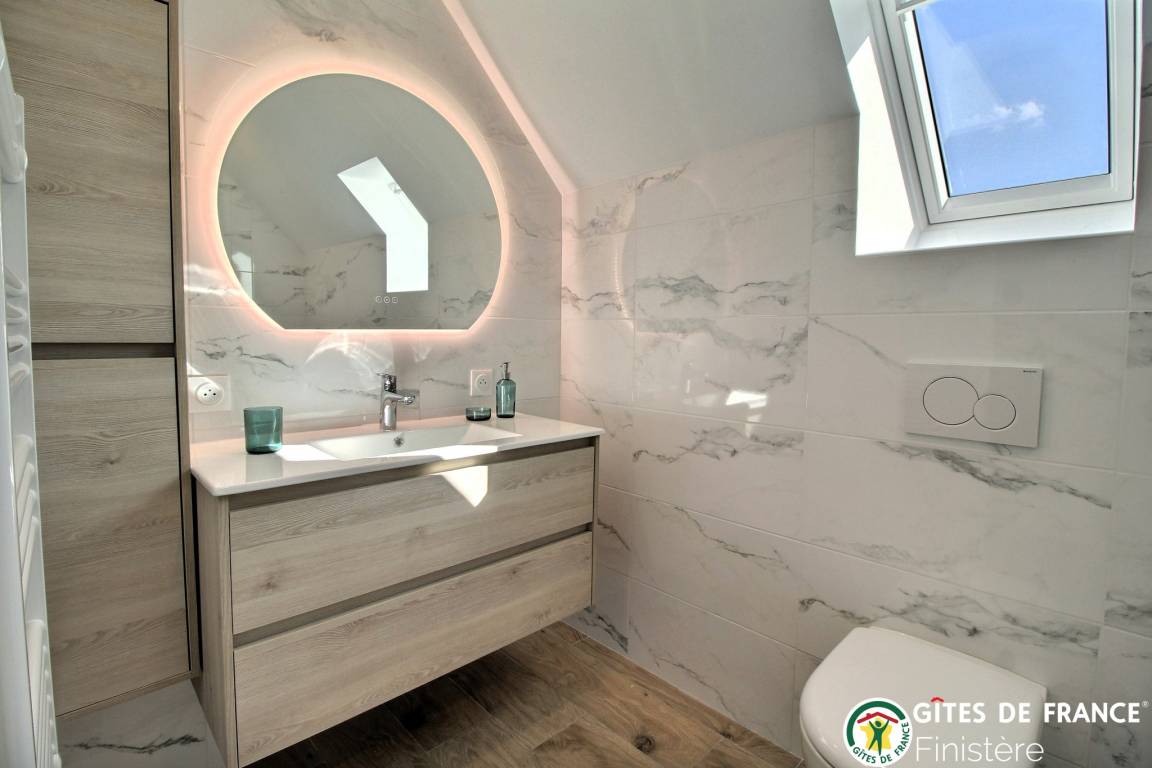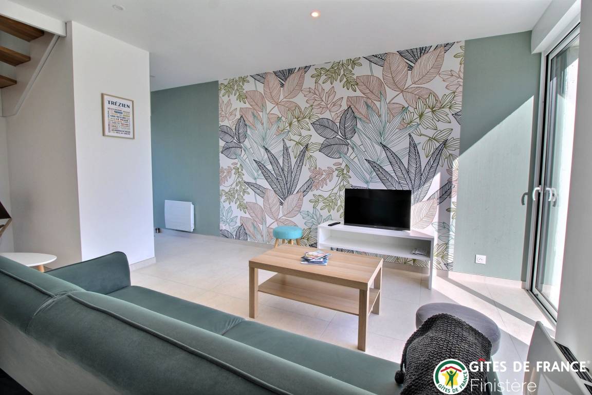 „Au Ty Porsmoguer, vous trouverez un concentré de tout ce qui fait le charme de la pointe du Finistère: Le côté campagne avec ses fermes et ses champs, le côté littoral de la mer d'Iroise avec ses plages et son sentier des douaniers, le GR34. Idéal donc pour tomber amoureux du Finistère, si ce n'est pas déjà le cas. Le gîte est neuf, propre, bien équipé, tout est réuni pour un séjour réussi. Pas de jardin clos pour le chien mais une possibilité de promenade sur un chemin tranquille avec plein de bonnes odeurs. Situation au calme malgré la mitoyenneté car le voisin est discret. Un grand merci à Véronique pour son accueil !“