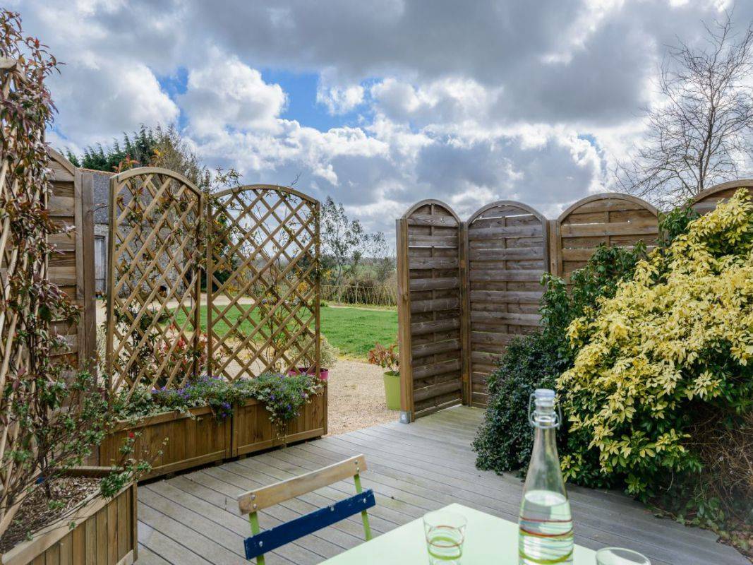 Ihre Ferienwohnung umfasst auf einer Ebene: ein Wohnzimmer mit amerikanischem Küchenbereich (Hochtisch und Hocker), 1 Schlafzimmer mit Doppelbett (160x200), ein Badezimmer mit Dusche, separates WC. Private Terrasse von 20m². Fahrradunterstand vor Ort vorhanden. Privater Parkplatz auf dem gemeinsamen Kieshof.