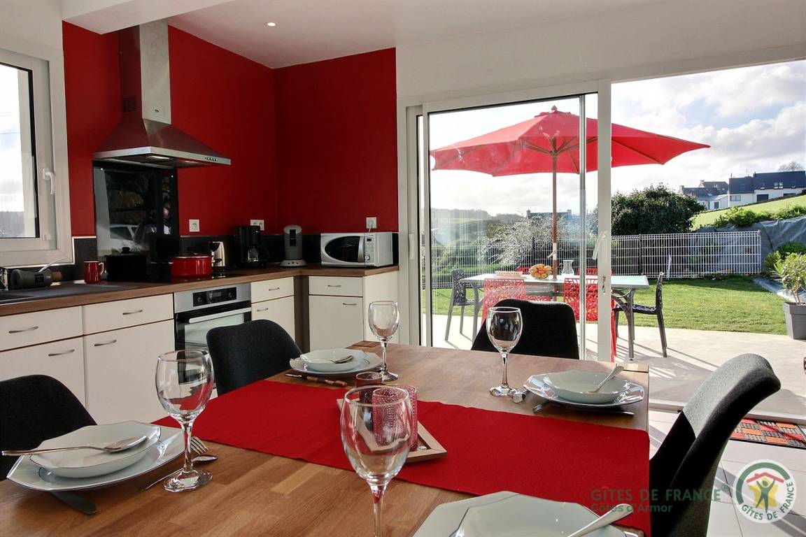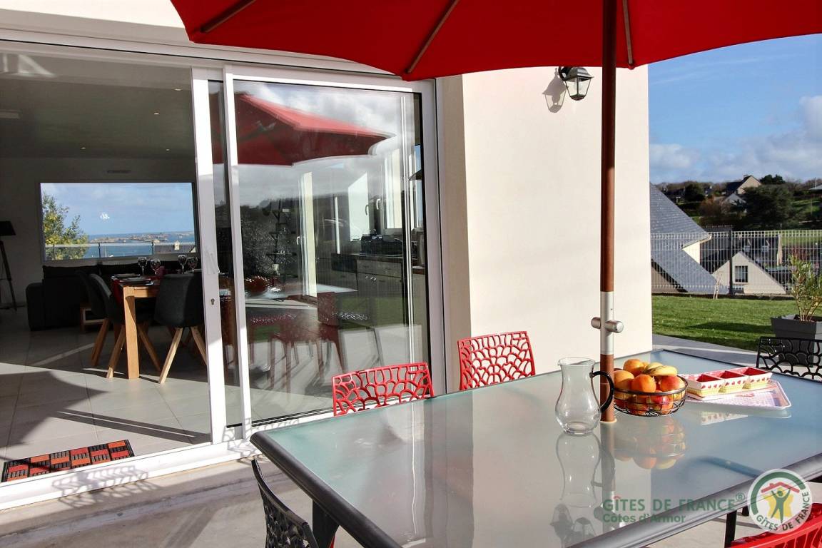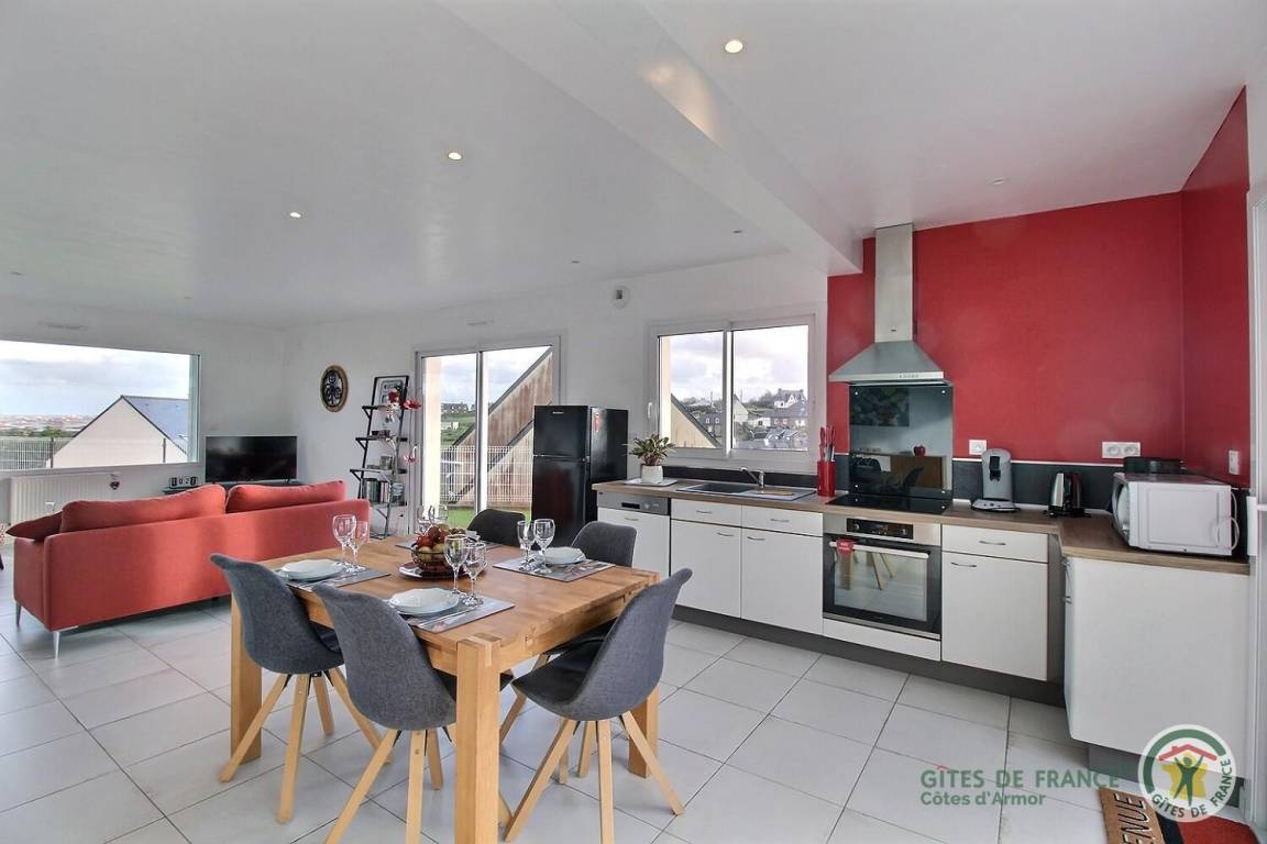 „Un gîte magnifique, lumineux, confortable, très bonne literie, joliment décoré. Vaiselle, verres, couverts, ustensiles en suffisance et bien rangés. Le plus indéniable est la vue mer. L’endroit est très calme. Proximité des commerces. Les visites que nous avons appréciées sont l’ abbaye de Beauport, les jardins du château de la Roche Jagu, Binic…Merci à René et Edith pour leur accueil, leur disponibilité et leur petit cadeau de bienvenue.“