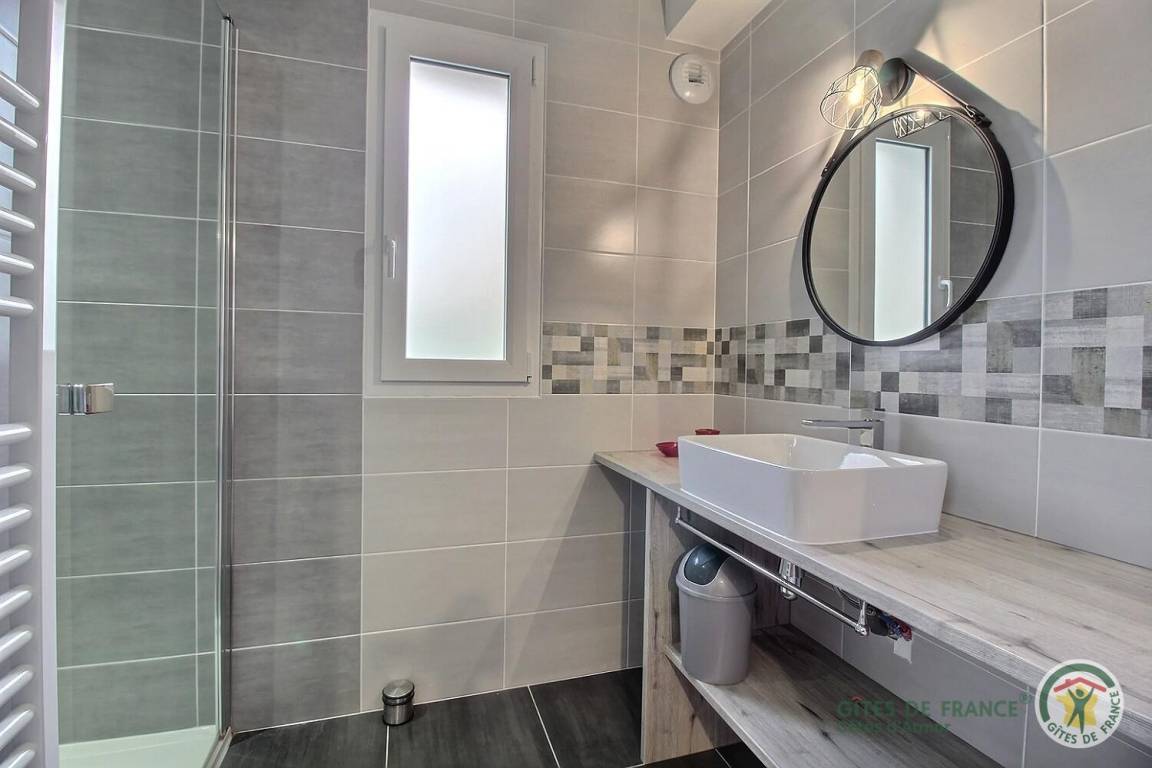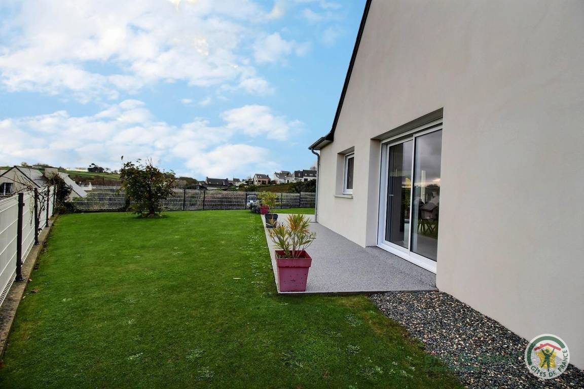 Ihre Ferienwohnung umfasst auf einer Ebene: ein Wohnzimmer mit Küchenbereich, 2 Schlafzimmer (1 Bett 160 x 200) (2 Betten 90 x 190), jedes mit eigenem Badezimmer (ebenerdige Dusche und Waschbecken), Toilette mit Waschbecken, Waschküche / Abstellraum. Tischtennisplatte vorhanden. Freistehendes, modernes Haus, das von einer nach Südosten ausgerichteten Terrasse von 38 m², einer geschotterten Auffahrt und einem Hof von 200 m² und einem Garten mit Rasen von 300 m² begrenzt wird, teilweise eingezäunt mit Ausnahme des Tors. Privatparkplatz auf dem Grundstück für mindestens 2 Fahrzeuge.