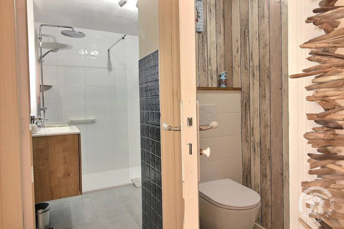 „Tout était parfait. I manque une chose: Une 2eme pièce d'eau et toilettes. Pour 6 personnes celle existante est à mon avis insuffisante. Mais ça ne gâche pas les vacances dans un si beau gîte !“