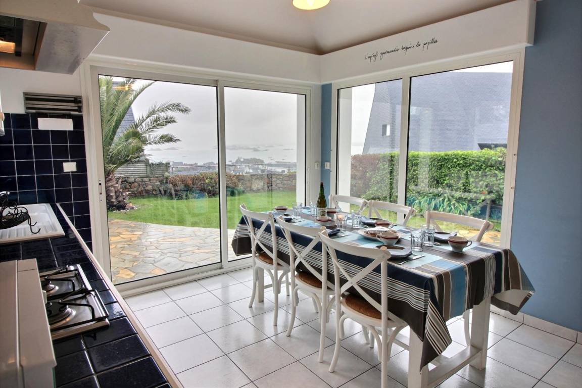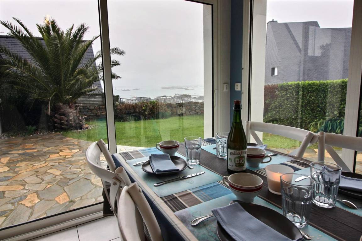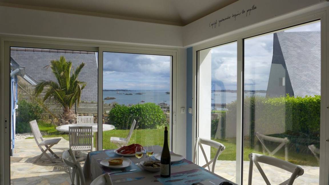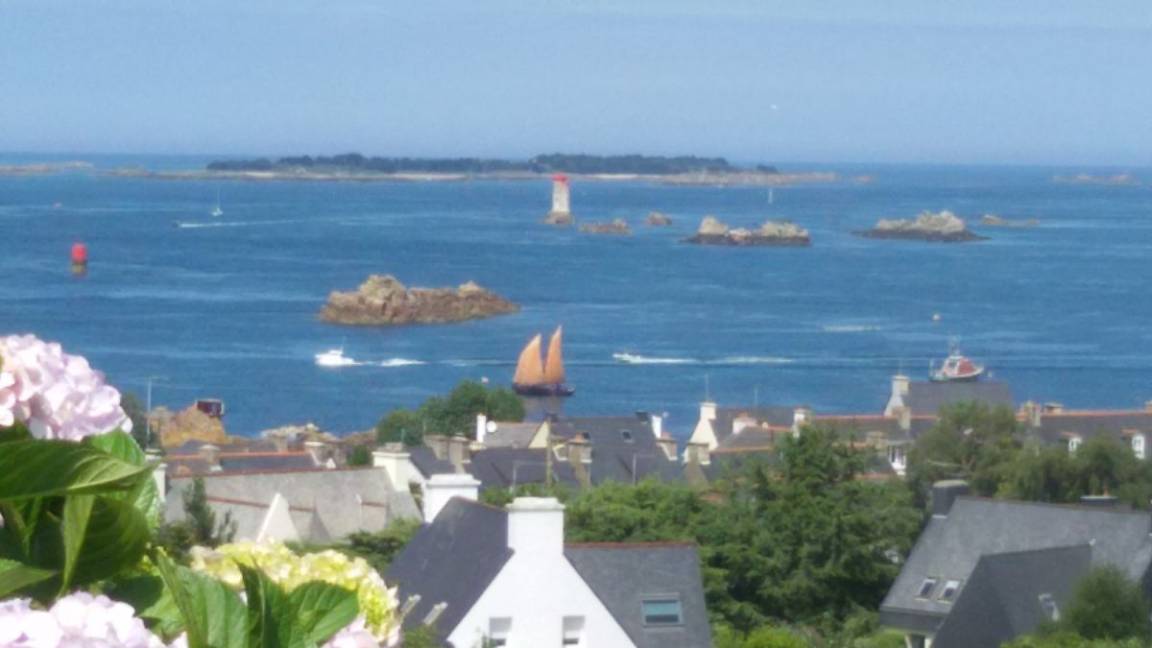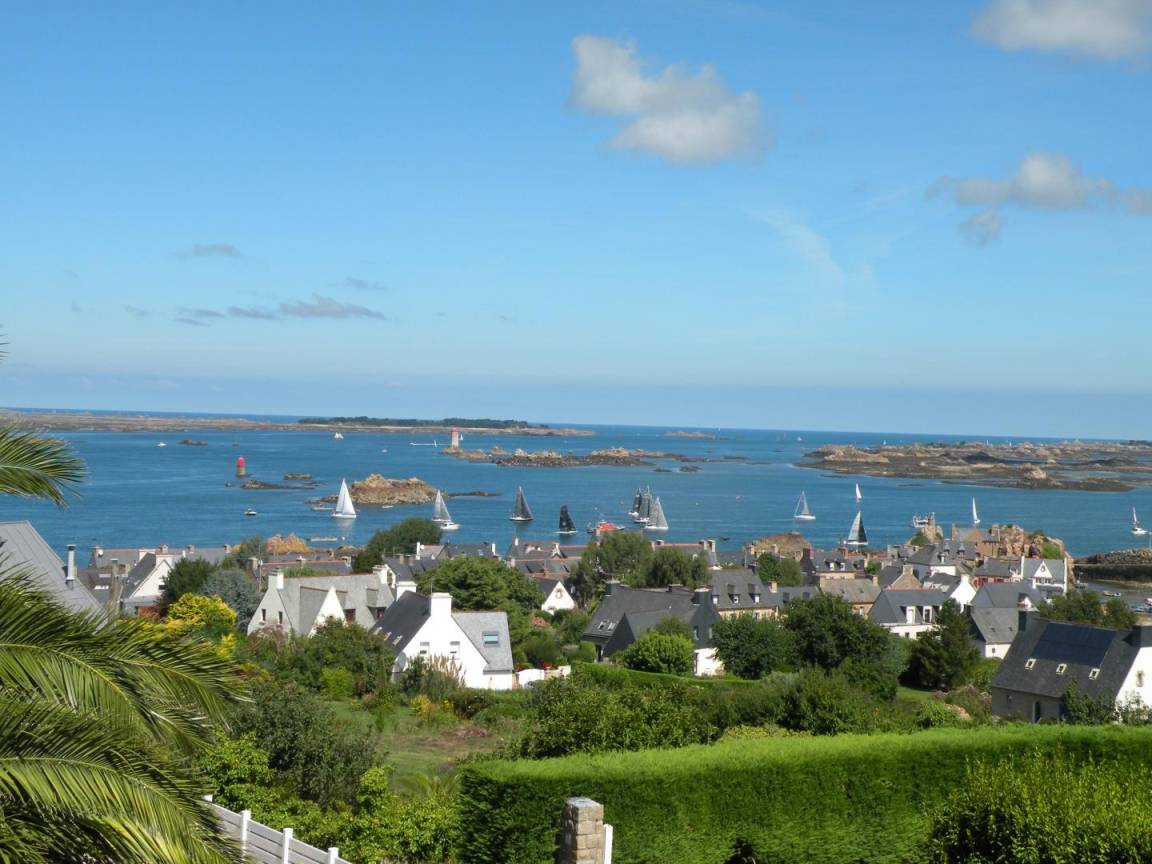 „Vue 5 étoiles sur le petit port de Loguivy sur mer: Nombreux bateaux et les îlots de Bréhat. Idéalement situé sur les hauteurs pour un panorama inoubliable, bon accueil avec cidre et rillettes de maquereaux, maison confortable et belle véranda, cheminée, le village est proche de belles promenades alentour.“