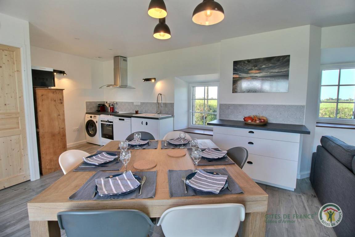 „Nous avons passé quelques jours très chouettes. Le gîte est très bien aménagé et heureusement bien chauffé car nous avons eu un peu de fraîcheur. Le propriétaire est très sympa et disponible (il occupe une des 3 maisons dont 2 aménagés en gites). Le terrain disponible est très grand et il n'y a aucun vis a vis. Beaucoup de choses à voir et faire à quelques km (randonnées, Abbaye de Beauport, jardins du château de la Roche Jagu, bord de mer, île de Bréhat etc...). Nous n'hésiterons pas à revenir.“