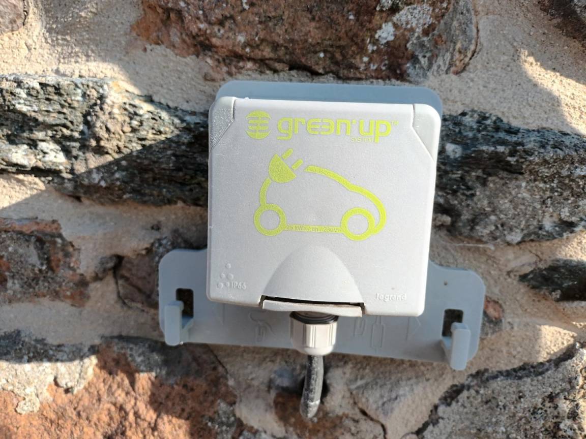 Eine Ladestation für Elektroautos ist vorhanden.