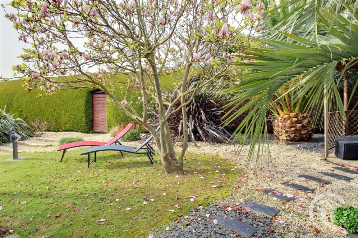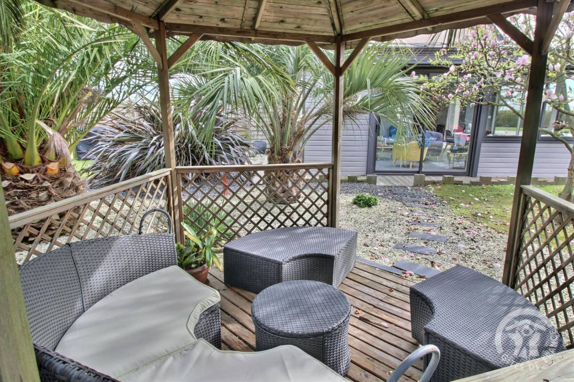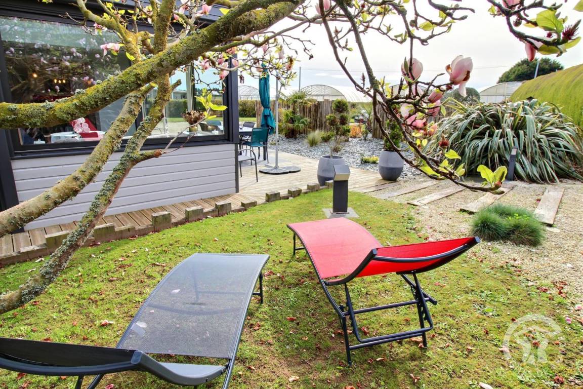 Eine 40 m² große Terrasse, ein umzäunter angelegter Garten von 1000 m² privat.
