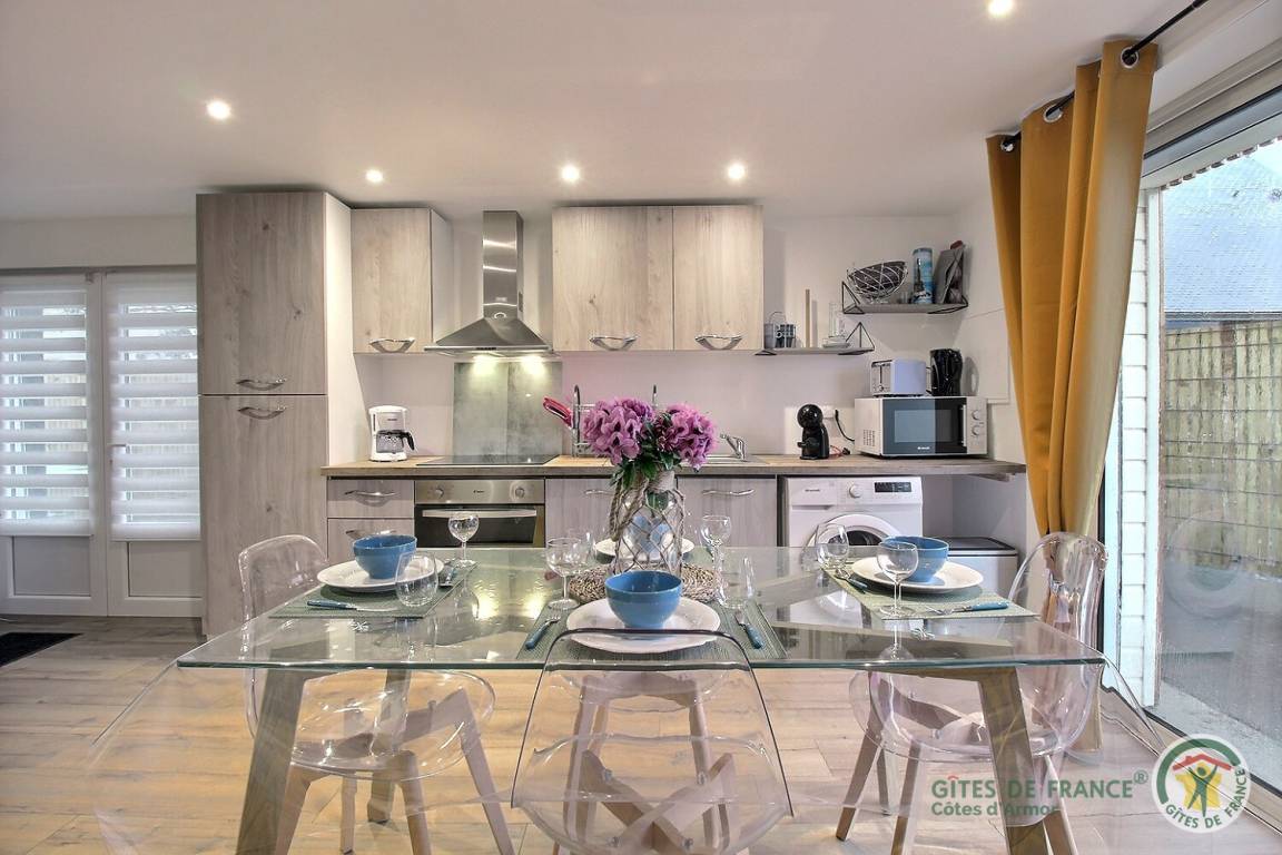 Ty Al Levenez (Das Haus des Glücks) liegt 2,5 km von der Stadt Ploubazlanec (alle örtlichen Geschäfte) entfernt in einer grünen Umgebung und ist eine komfortable Adresse mit trendiger und harmonischer Dekoration: Sie fühlen sich dort wohl! Die direkt vom Wohnzimmer aus zugängliche Innenhofterrasse lädt zu Momenten der Entspannung auf den Liegestühlen ein... Die Eigentümer, die direkt nebenan wohnen, aber nicht zu übersehen sind, stehen Ihnen zur Verfügung, um Sie bei Ihren Entdeckungen zu begleiten... To Beginnen Sie am Strand von Gouern, einem ruhigen und entspannenden Strand, der sich entlang der Küste nach Loguivy de la Mer, einem hübschen Fischerhafen, erstreckt. Sie wechseln sich mit dem Strand von Roc'h Hir ab, der ebenso angenehm ist. Die privilegierte Lage ermöglicht es Ihnen, schnell zum Pier (3,7 km) der Ile de Bréhat zu gelangen: ein unverzichtbarer Besuch während Ihres Aufenthalts. Lust auf kmeinen Spaziergang, einen Drink auf der Terrasse? ¨Paimpol :