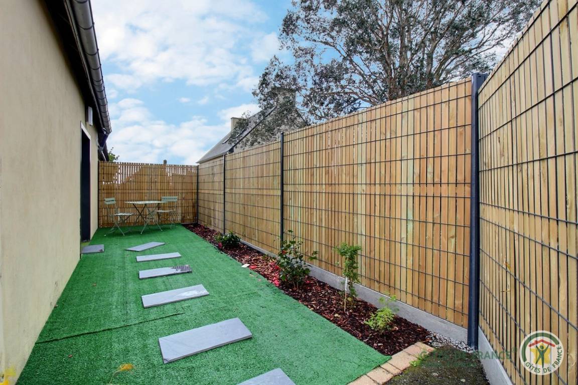 Ihre Ferienwohnung umfasst im Erdgeschoss: Wohnzimmer mit Zugang zur Terrasse, Einbauküche, 1 Schlafzimmer ohne Durchgang (1 Bett 140x190), Badezimmer (ebenerdige Dusche und WC). Obergeschoss: Entspannungslounge im Zwischengeschoss, 1 Schlafzimmer (1 Bett 140x190). geschlossener und geschlossener Innenhof von 40 m². Parken auf dem privaten Parkplatz am Eingang des Grundstücks. Gartenhaus zur Unterbringung von Fahrrädern und Strandausrüstung vorhanden...